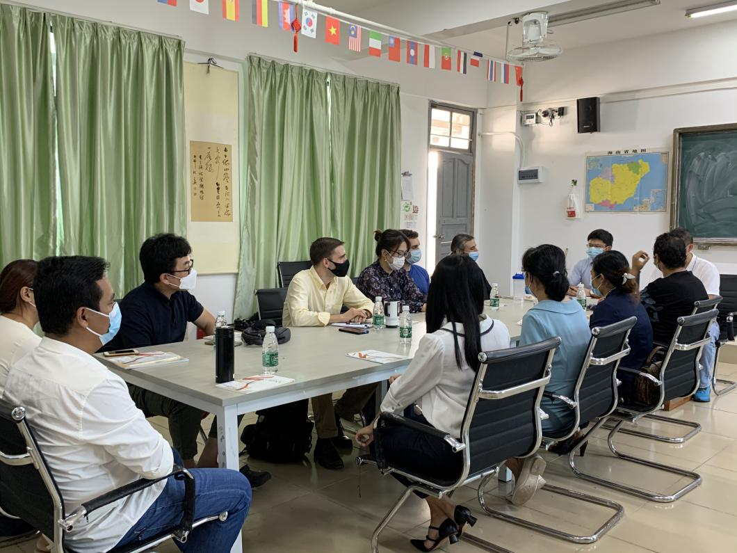 9月28日下午,国际交流中心(东盟研究中心)在综合楼BE503教室召开学院新学期外教工作会议,党委办公室(宣传统战部)兼国际交流中心(东盟研究中心)主任饶其康,国际交流中心(东盟研究中心)外事科科长陈建奇,国际交流中心(东盟研究中心)对外汉语教研室主任(代)黎凝,学院各系部外事秘书,外教助理及两名实习生晏溪、谢晨参加会议。会议由国际交流中心(东盟研究中心)外事专员王琳淞主持。