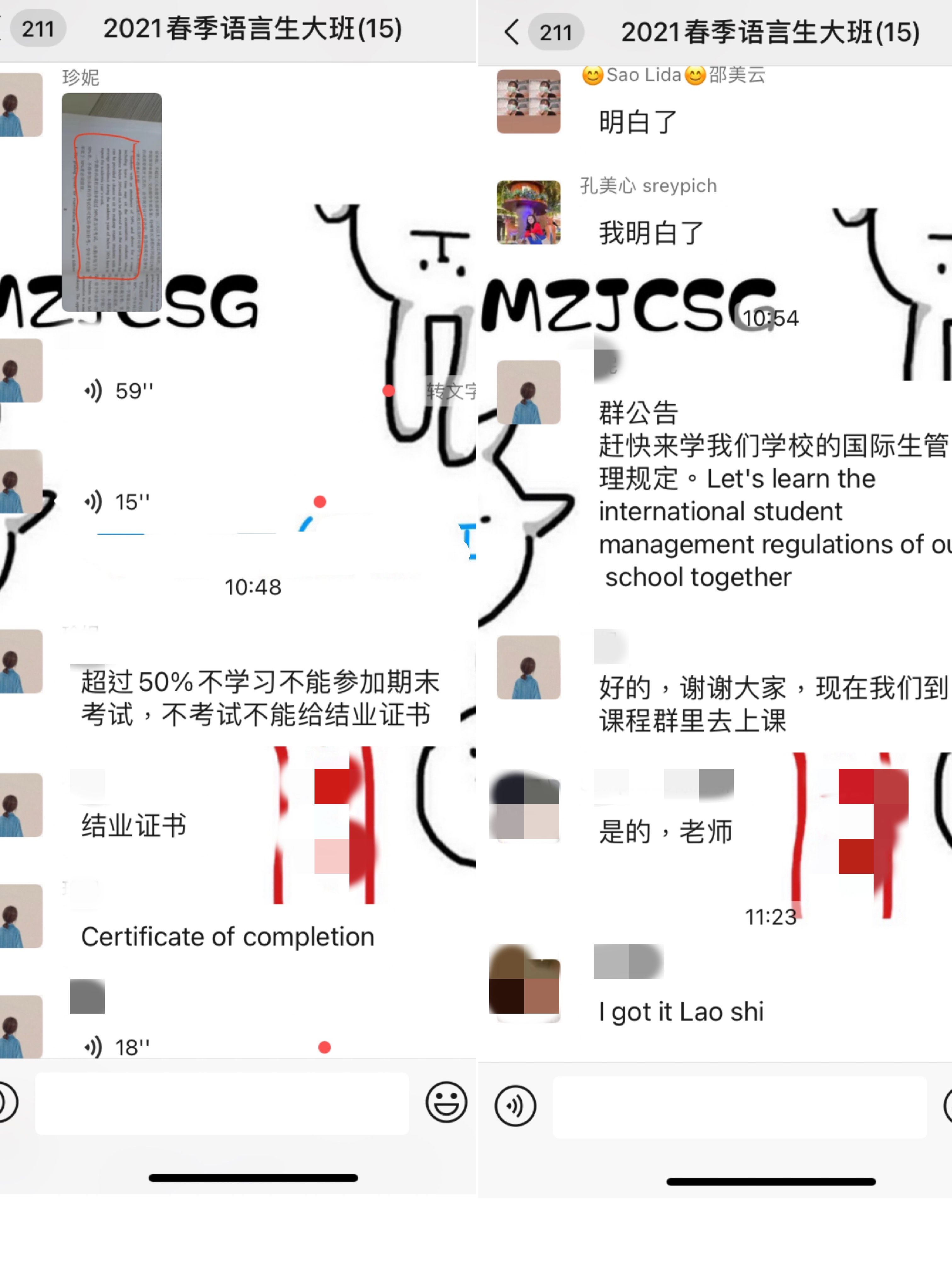 会议传达了beat365国际生相关管理规定和其他注意事项,如中国法律法规、校纪校规、国际生成绩考核、结业和毕业要求、校园秩序与课外活动等。要求国际生认真完成线上课程的学习、以及酒店管理专业国际生的实习任务,以期顺利结业和毕业。同时,叮嘱国际生做好所在国防疫措施,及时与班主任和辅导员保持联系。