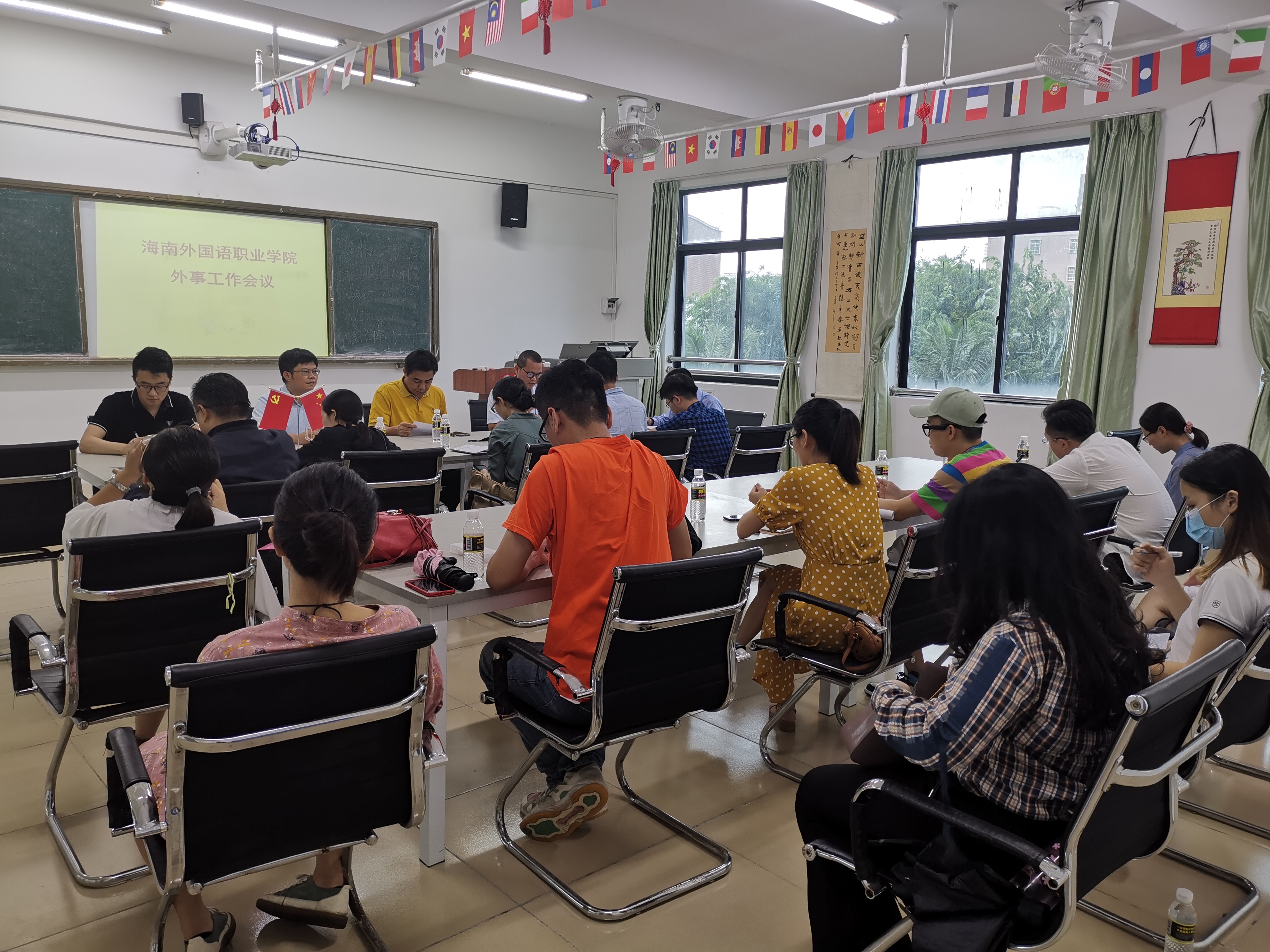 2020年11月2日下午,beat365在综合楼BE503召开外事工作会议。副院长、党办主任梁松,党办负责人、国际交流中心主任饶其康,国际交流中心外事科科长陈建奇,对外汉语教研室主任(代)黎凝,学校全体外事秘书及外教助理参加会议。会议由国际学生辅导员潘立鹏主持。