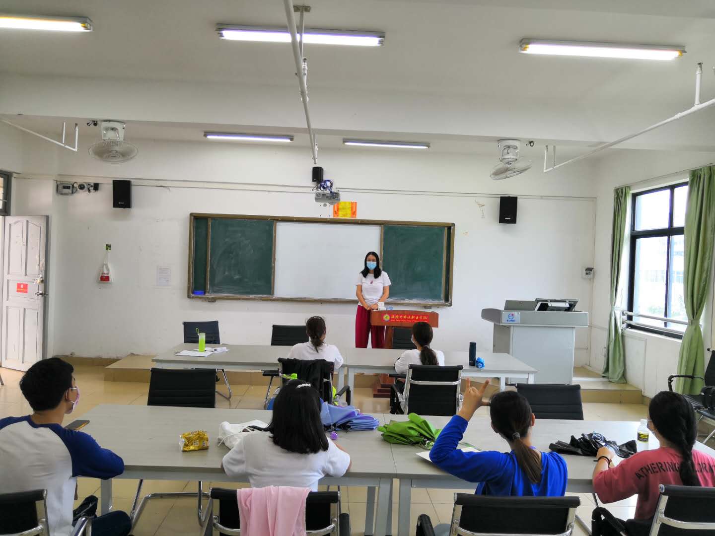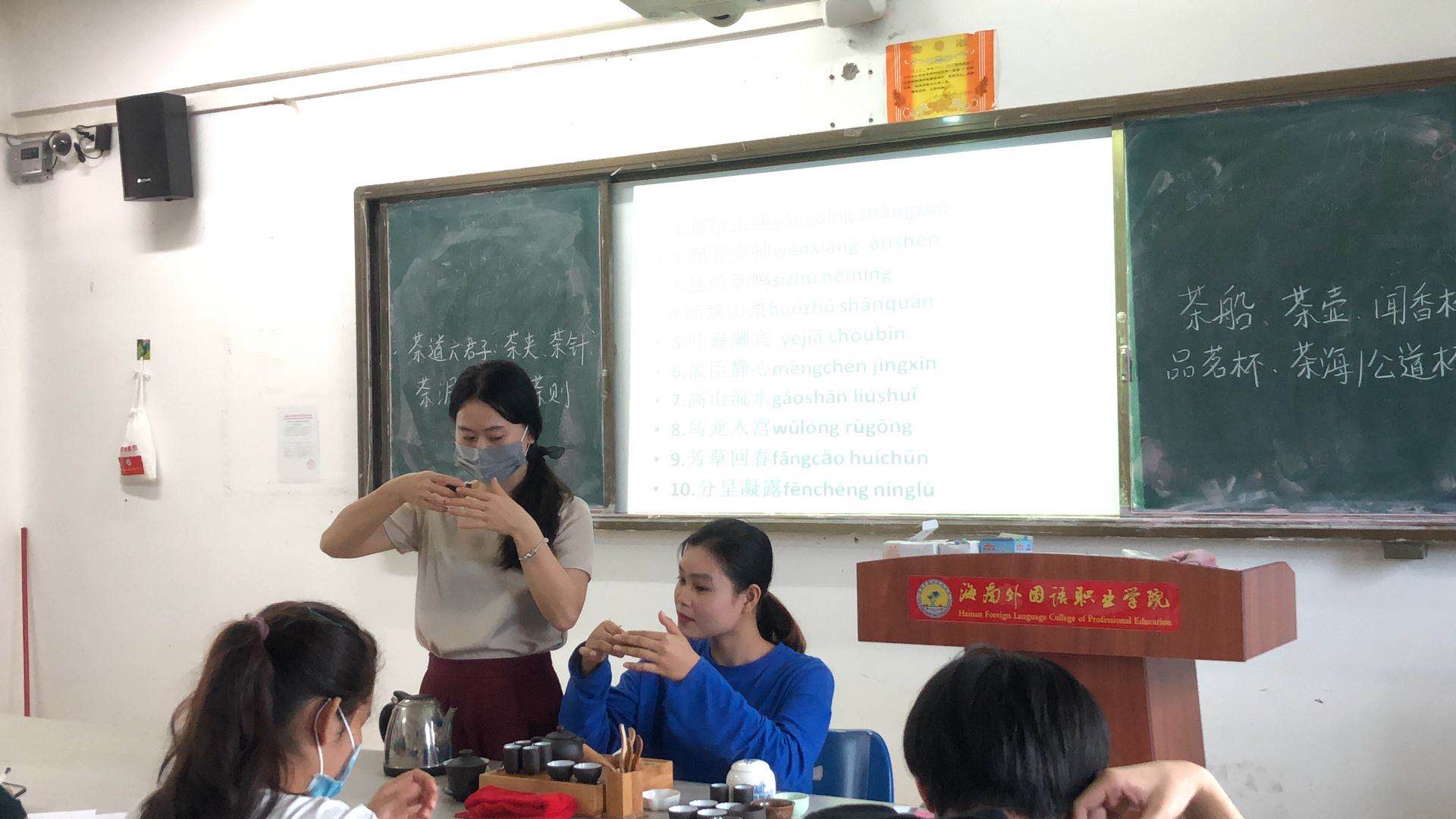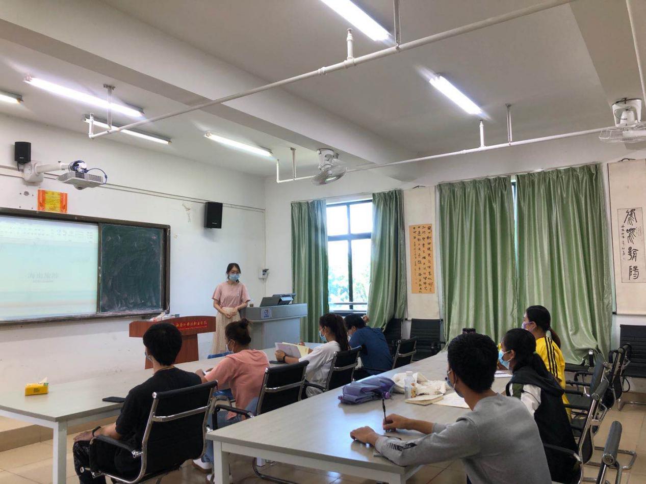 为认真落实学校及国际交流中心(东盟研究中心)关于疫情防控期间春季开学有关线上线下教学的工作要求,对外汉语教研室于5月22日开展线下授课,授课对象为来自柬埔寨、老挝和泰国的留校的国际学生,授课内容为中国文化专题,包括:海南风俗文化生活、中国诗词文化、中国古代历史、海南旅游、自贸港建设和中国茶文化等。