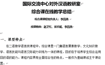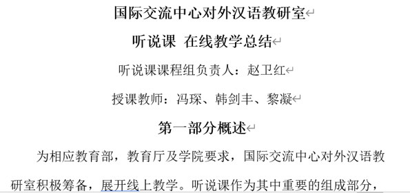 自2月17日起实施以来,在线教学整体情况良好。对外汉语教研室针对学历生和语言生开设汉语综合、汉语听说、HSK教程等共计12门线上教学课程,参与国际学生43人次。运用荔枝微课、中国大学慕课等多种线上教学平台实施线上教学。向分布在世界各地的国际学生传授汉语知识,传播中国文化,传递中国正能量。