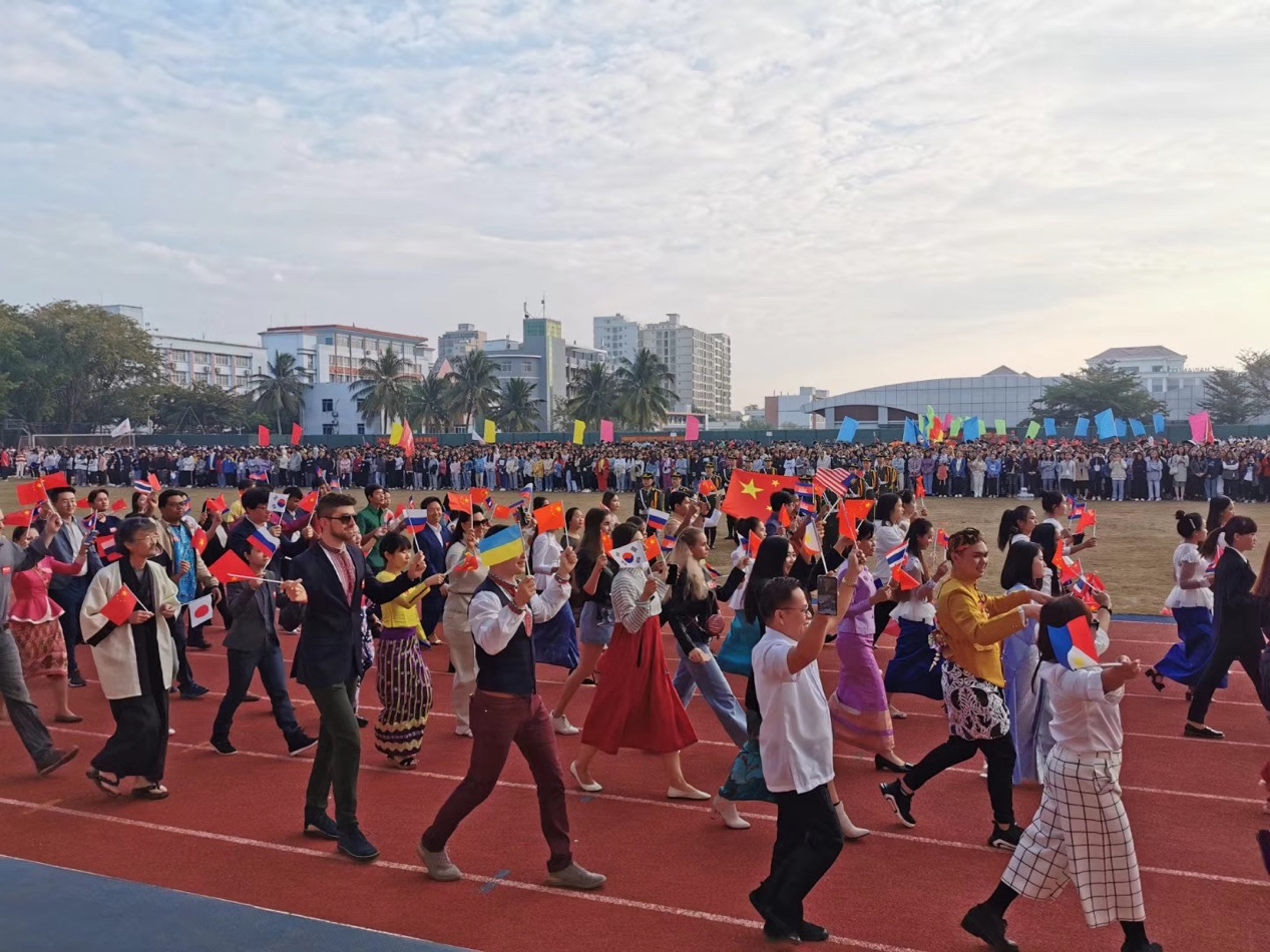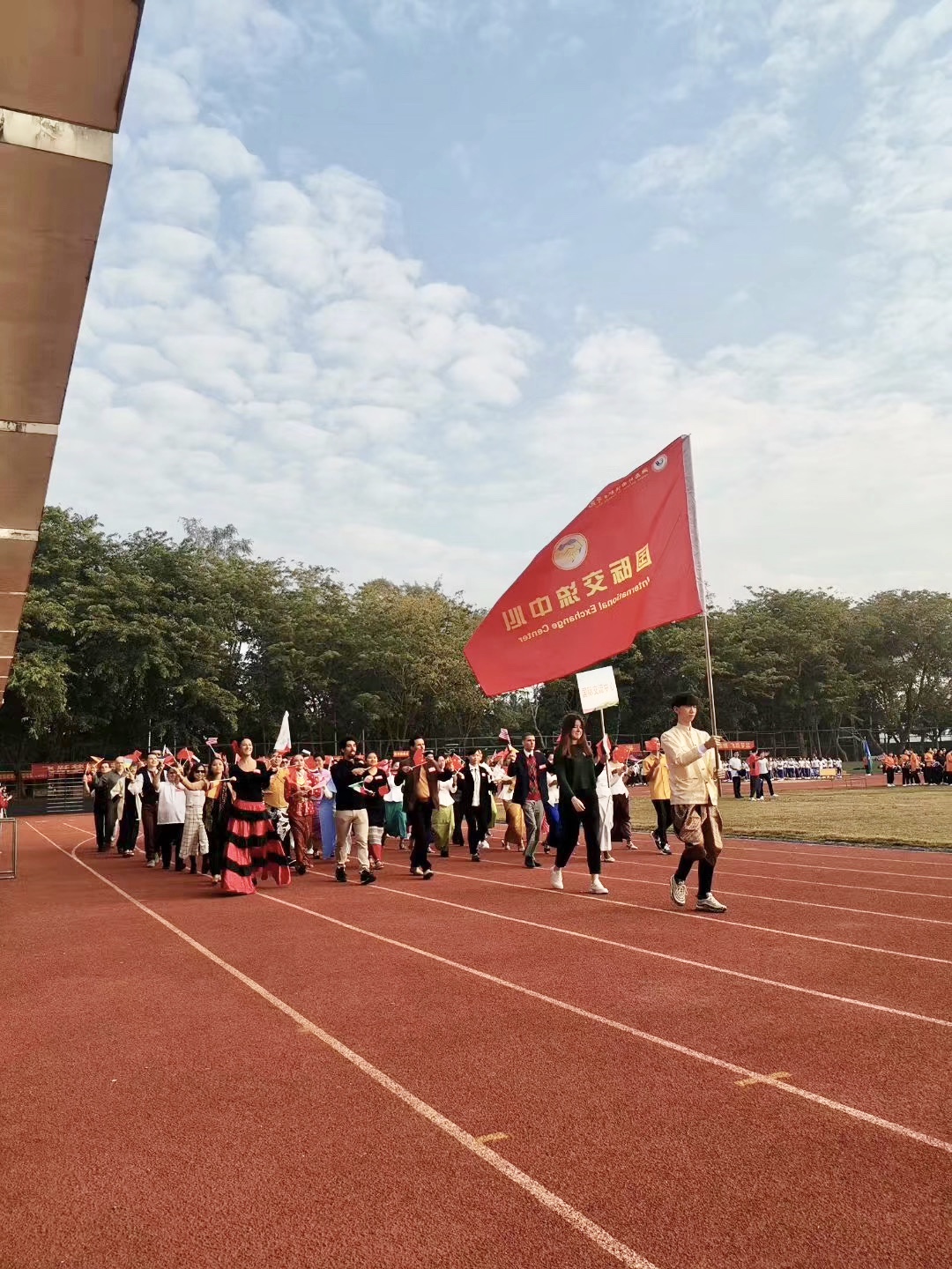 2019年12月11日上午八时,beat365第十一届学生运动会暨第四届教职工运动会拉开序幕。beat36517个语种外教、全体留学生及我中心工作人员共同组成的国际交流中心方队参加了入场式。