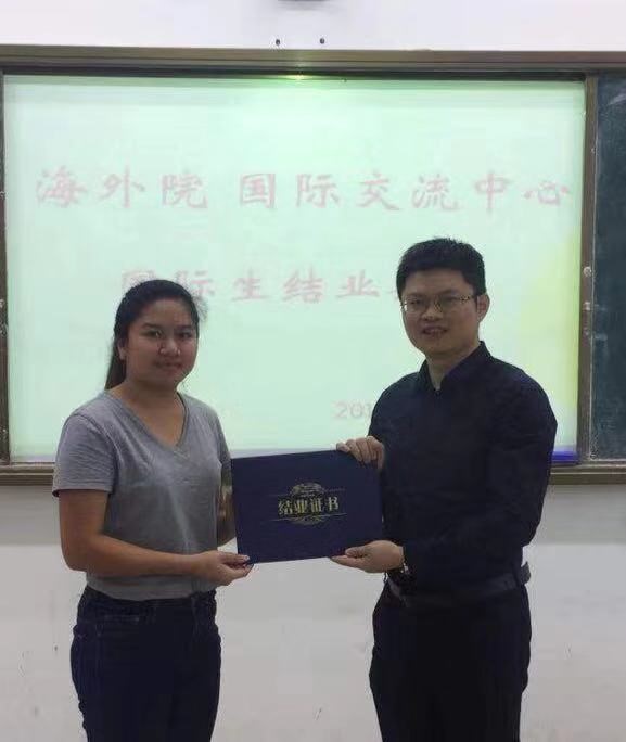 首先,中心饶其康主任代表国际交流中心全体工作人员对完成为期一年语言学习的同学表示祝贺,并希望这些即将回国的同学,借助中外交流的契机,努力为中外交流出一份力,充当起中外文化交流的桥梁。饶主任更是从全球发展的大格局出发,教导全体留学生要有全球一体化视野和人类命运共同体意识。留学生辅导员潘立鹏老师针对即将到来的寒假,做出安排,并提醒所有学生,寒假期间注意人身安全,增强防火防电安全意识。接着,中心饶主任、国际交流中心(东盟研究中心)外事科科长陈建奇、留学生辅导员潘立鹏老师分别为结业的学生颁发结业证书。
