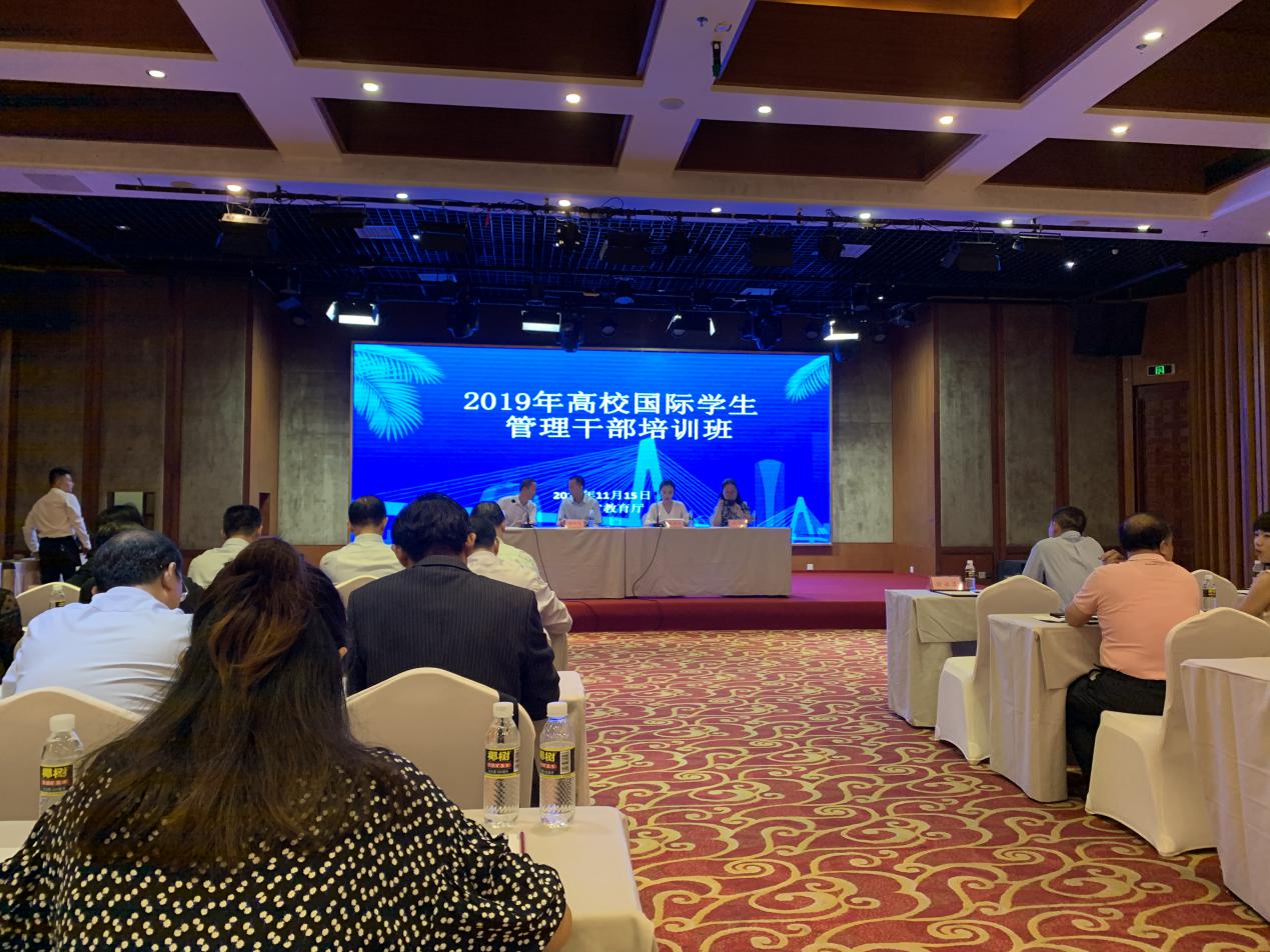 11月15日,由省教育厅主办的2019年省高校国际学生管理干部培训班在博鳌顺利开班,来自全省的高校代表参加了本次培训。中心主任饶其康、教师李昌燕、实习辅导员程建阳参加了本次培训。此次培训,内容涵盖了留学生日常管理、舆情应对及预防和留学生学习、居留、就业等方面政策解读,具有很强的实用性和针对性,有助于我省留学管理人员间相互交流工作经验,提升业务水平和综合素质,适应新形势下的来华留学管理需要。