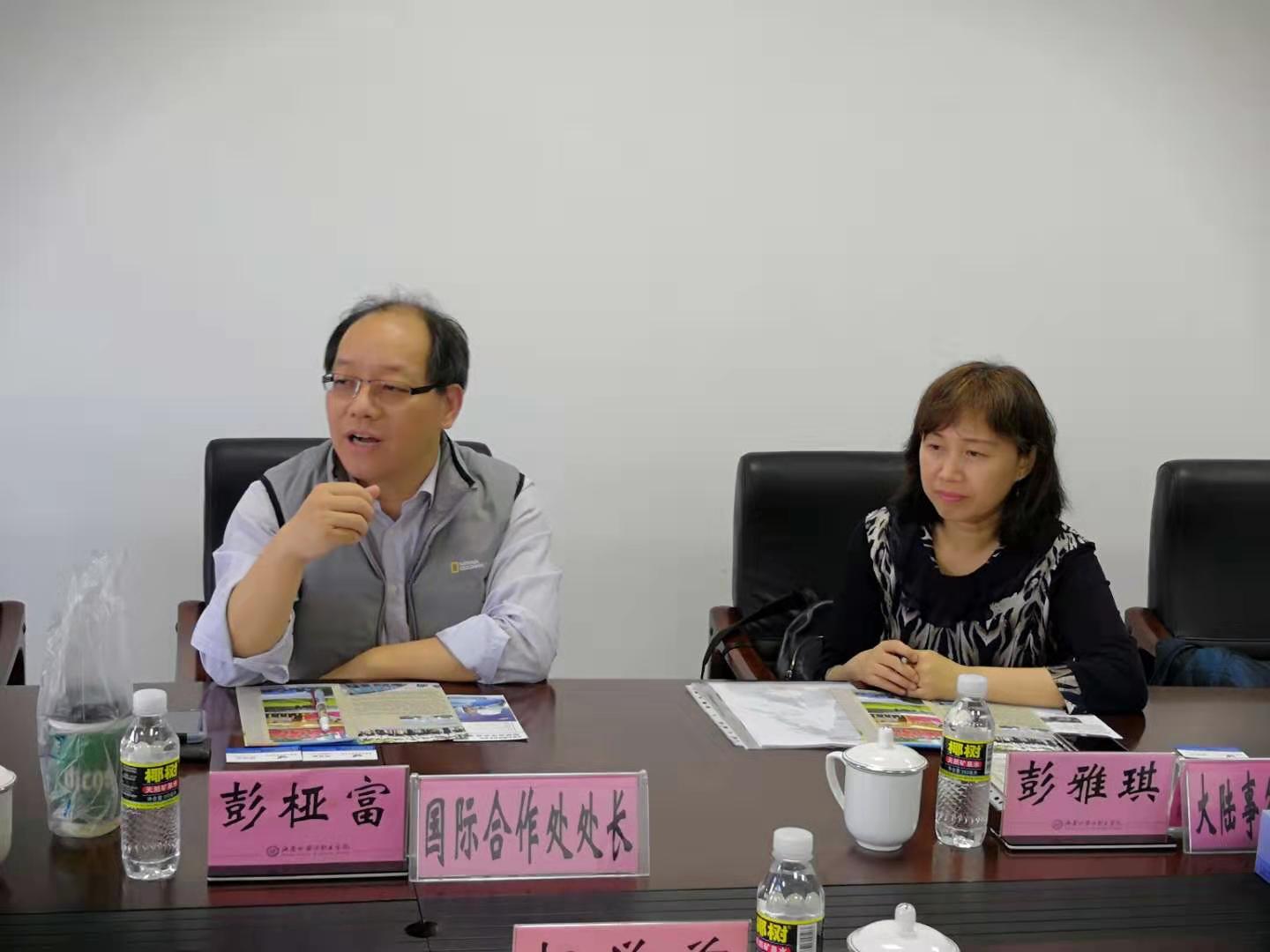 (台湾台湾健行科技大学国际合作处处长彭桠富、大陆事务项目主管彭雅琪)