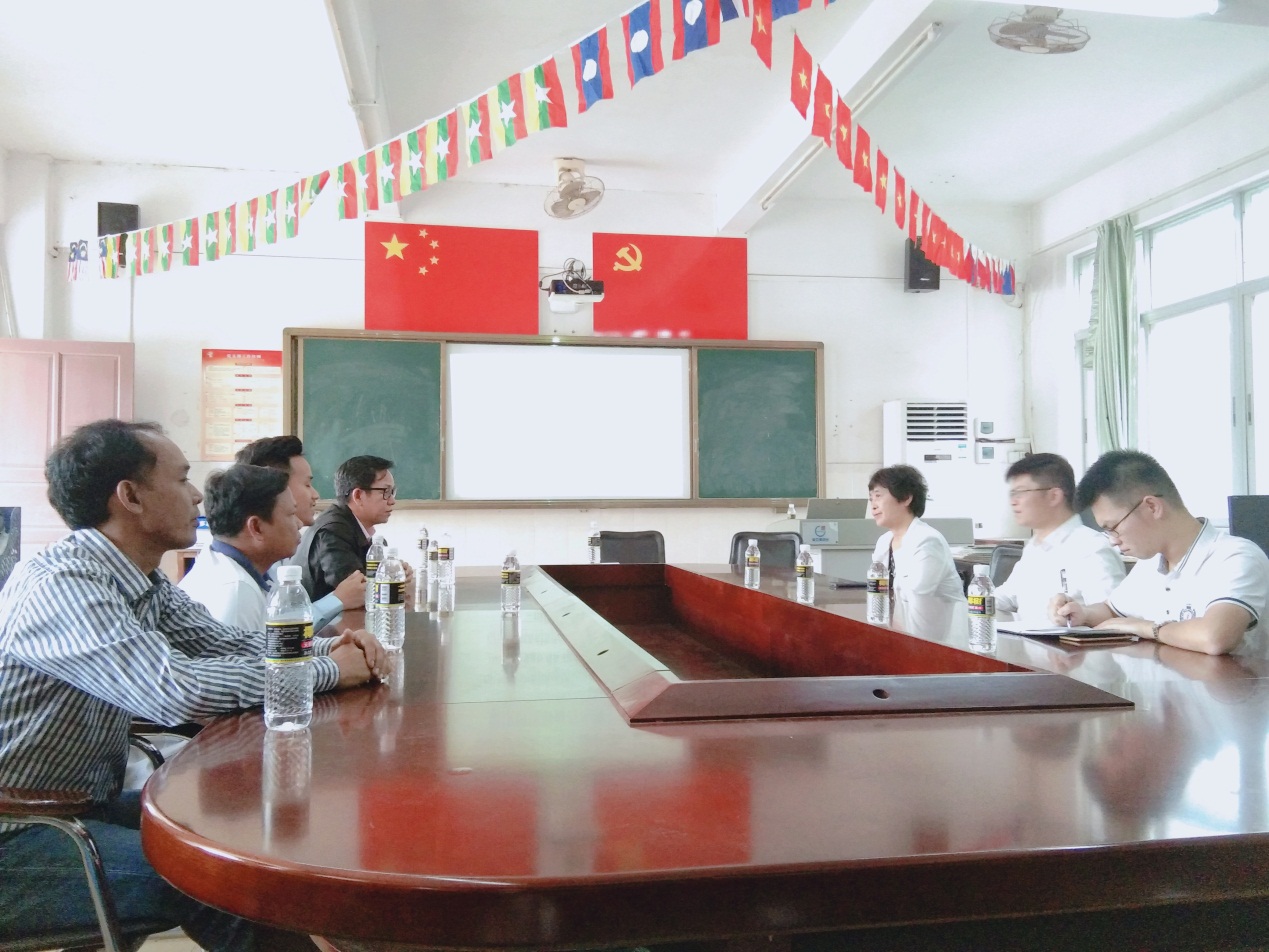 饶其康主任代表学院对总领事黄万达阁下的来访表示热烈欢迎,并简要介绍了柬埔寨留学生的学习与生活情况。他指出,在学校政策和能力允许的条件下,我院将会接纳更多的柬埔寨留学生,并且会继续加强对留学生的教育和管理,提供更多的来华学习的奖学金。如今,中国正在努力将海南全岛建设为自由贸易区(港),相信在我院与总领事馆的共同努力下,中国海南与柬埔寨国家之间的人文交流和经贸合作将会更加密切。