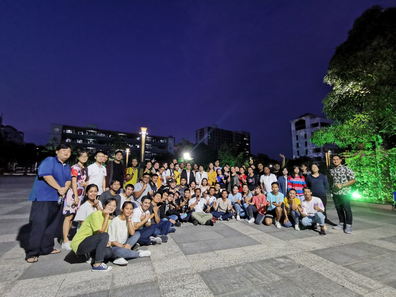 会谈后,总领事黄万达一行与中柬师生共庆柬埔寨国庆节。在柬埔寨语外教王虎老师的主持及组织下,大家尽情欢歌起舞,沉浸在歌声与欢笑之中,以此表达对节日的祝福。同行的还有在海南大学留学的十几位柬埔寨留学生。