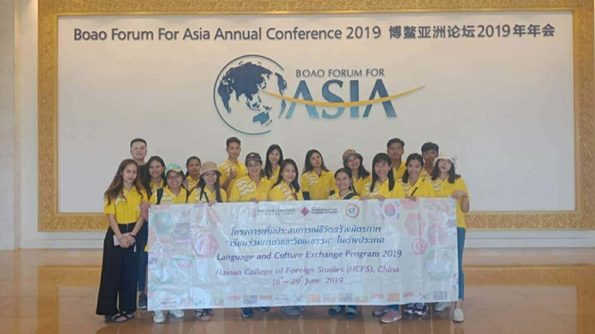 2019年6月16日下午,泰国班颂德皇家学院(以下简称BSRU)的17名师生应邀前来我院,根据安排,BSRU学生们将在我院进行为期两周的汉语文化夏令营活动。此次活动主要由国际交流中心统筹安排,东语系师生协助,为BSRU学生安排了富有特色的课程与活动。