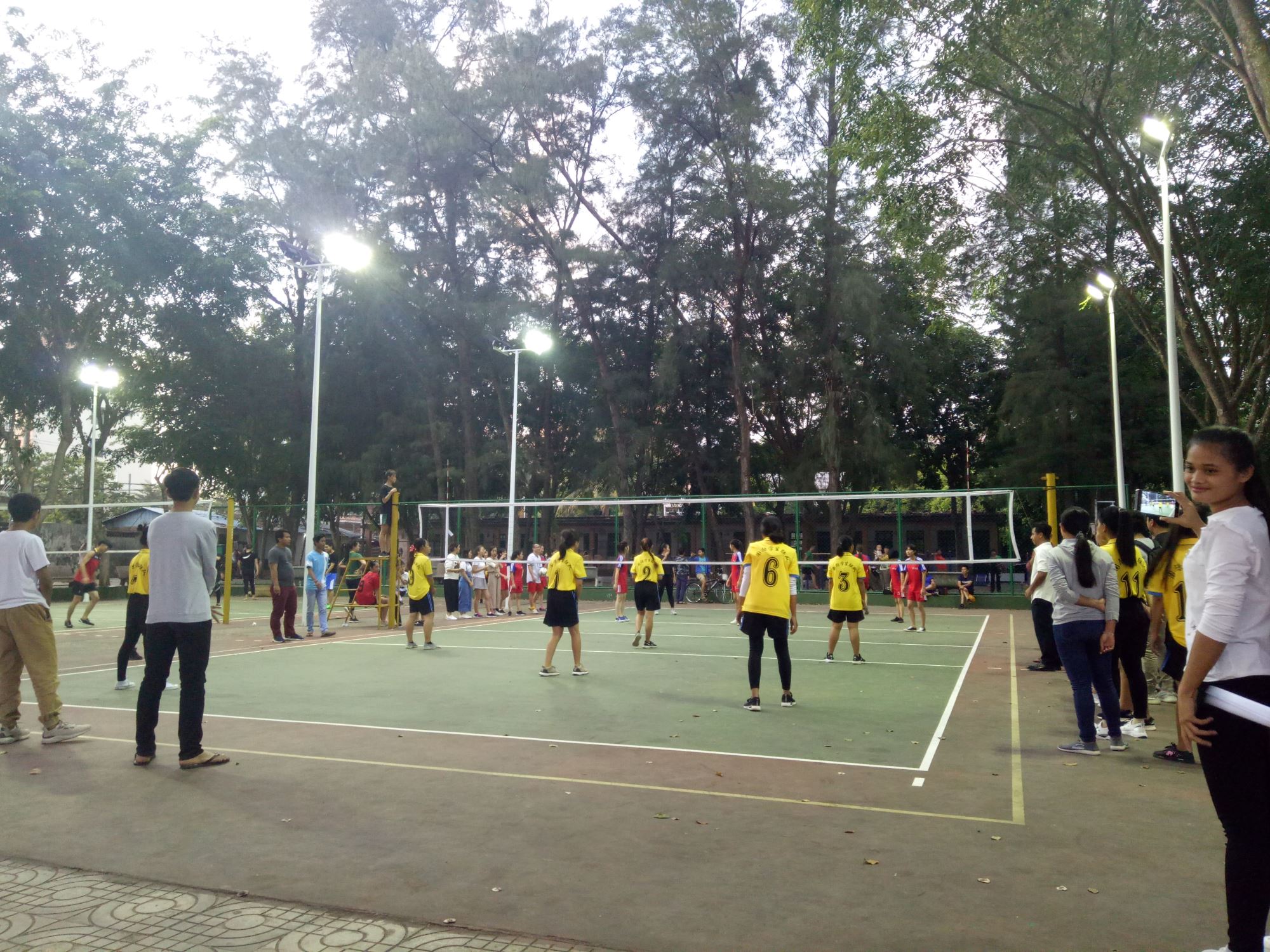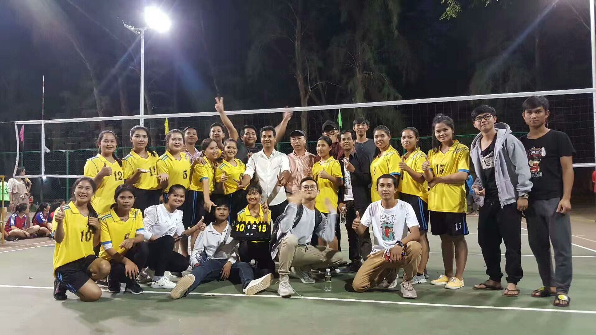 “战争”一触即发,观众们聚集在赛场周围翘首以待。双方队员各施绝技,一个个精彩扣球,拦网,队员们互相配合,相互鼓励,积极配合,奉献了一场精彩绝伦的比赛。来自柬埔寨的刘思婷同学,虽然身材娇小,却有着惊人的力量,担当发球手的她在比赛中扮演着重要的角色。在场的啦啦队一直在给队员们加油助威。