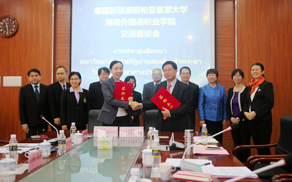 陈礼民书记指出,文化教育是中国和泰国两国关系的重要组成部分,中国和泰国两国文化教育合作交流不断向前发展,目前我院已与泰国多所高校建立合作关系,已有一大批学生前往泰国学习。我院重视与泰国班颂德昭帕亚皇家大学的合作,希望借此次访问为开始,打开两校合作大门,实现两校间的合作与交流,增进两校的了解和沟通,为两校师生提供交流学习的平台,有更多机会领略对方国家的文化魅力,从而增强两校的办学实力,增进中泰两国人民的友情。