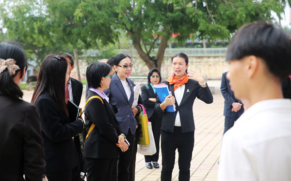 会后,泰国班颂德昭帕亚皇家大学一行还实地参观了我院校容校貌,以及校内各类学生实训室,并与泰语专业师生进行了友好交谈。