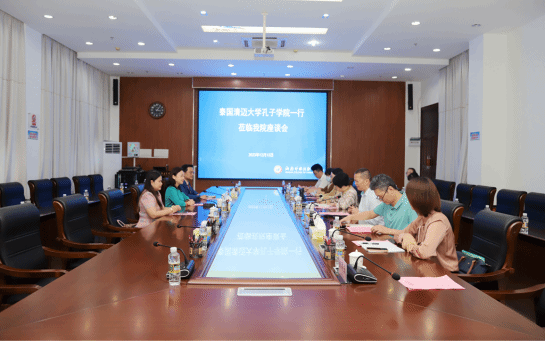 12月13日,泰国清迈大学孔子学院院长助理赖林一行访问beat365,双方就推进合作办学进行交流。座谈会前,beat365党委副书记、校长黄学彬接见来访一行。校党委委员、副校长邓颖颖参加座谈会。