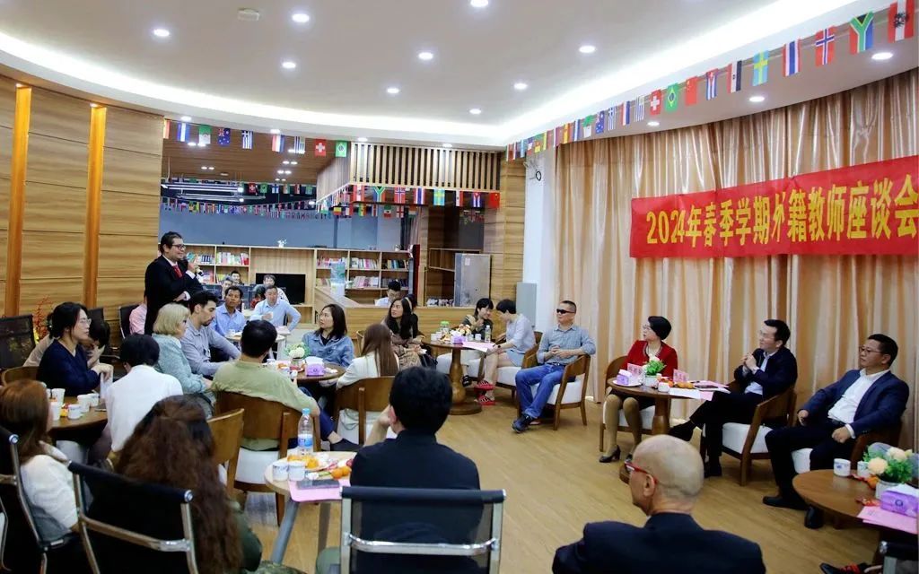 全体外籍教师以及国际合作与交流处、组织人事处、教务处、培训中心、英语学院、国际商务学院、东方语言学院、西方语言学院等部门和院部负责人及有关人员参加座谈会。