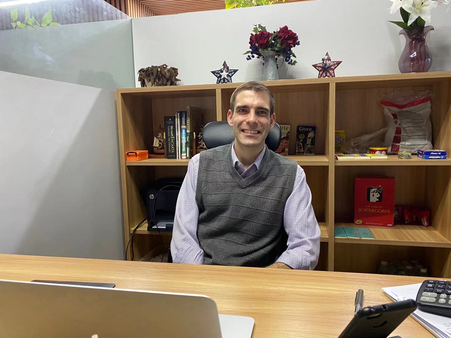John Matthew Sinskie 来自于美国弗吉尼亚州,硕士学历,目前是我院一名英语教师,给8个班级上课,学生将近250人。John 2008年就来过中国,当时还在上大二的他,就来中国做英语教师,与中国的情缘由此结下。毕业后,他和妻子一同来到了海南工作,2016年至2018年在海口攀丹小学工作,2018年后来到文昌我院。