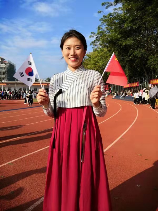 谈到来我院的工作契机,她说,韩国有专门服务对外韩语教师的网站,上面会不定期更新对外韩语教师的招聘,她就是从那个网站上看到了我院的招聘信息。至于为什么从众多的招聘信息中选择我们学院,她笑着说,因为以前也去过中国的很多地方,但都是北方,因为非常想看看中国的南方,所以就选择的海南。