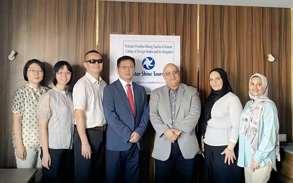 访问团时间安排紧凑、内容丰富、交流务实。11月12日至15日,代表团访问埃及,先后访问埃及十月六日大学、坦塔大学、开罗大学、埃及之星旅游集团等高校、企业。在与埃及十月六日大学语言与翻译学院专业带头人Nashwa博士和Sarah博士交流中,双方就校际合作、交换生项目、实习基地建设等合作事宜进行深入细致洽谈。在埃及坦塔大学访问团一行受到坦塔大学文学院院长Mamdouh Clmasry博士的热情接待。期间,双方就两校深化全面合作进行了全面、深入、细致地交流,并一致同意继续推进“3+2”专升本合作办学,加大教师往来和交流,积极开展教研课题研究。黄学彬热忱邀请坦塔大学校长和Mamdouh Clmasry博士在方便的时间到校访问和指导。在埃及之星旅游集团,访问团与该集团副主席Wael Bayoumi和人力资源部经理Soham Elkhateeb开展友好交流,双方就旅游服务、酒店管理专业人才的校企合作、留学生研训基地建设等事宜进行深入交流,并签署合作协议书。在埃及开罗大学,访问团一行拜访开罗大学孔子学院院长李哈布教授,双方就学生海外学习和实习交流基地等事宜进行交流。代表团实地调研开罗大学国际关系学院和孔子学院,了解师资情况、教学设施、课程设置、毕业生就业方向等情况。双方表示,希望尽快推进签署合作备忘录,进一步拓宽合作渠道,实现优势互补、共同促进、共同发展,为海南自贸港发展储备培养人才。