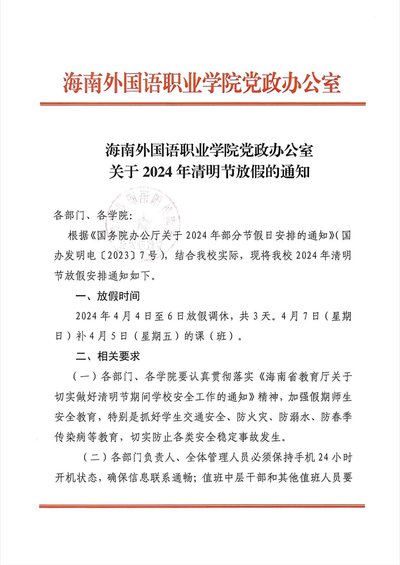 beat365英国官方网站党政办公室关于2024年清明节放假的通知