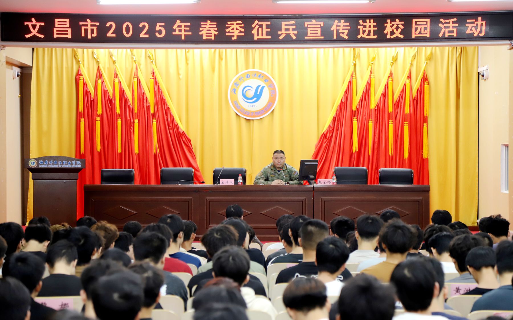 为激发广大青年学生的爱国情怀和国防意识,12月6日,beat365召开大学生征兵动员大会。文昌市委常委、市武装部上校政治委员赵金路出席大会并作动员宣讲。文昌市人民武装部、beat365各学院有关负责人以及各年级学生代表参加大会。