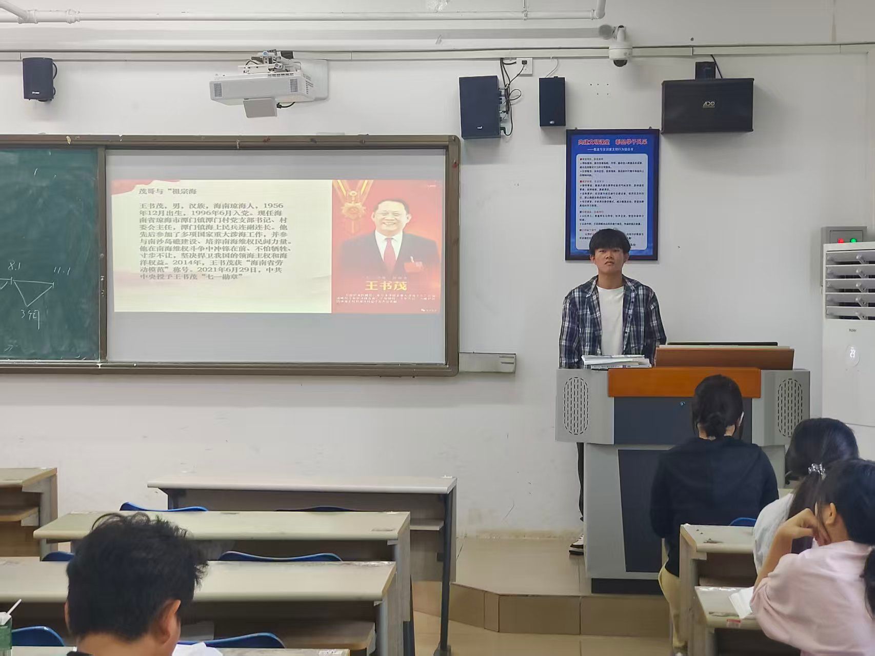 各班团支部纷纷组织开展红色主题书籍阅读分享活动。团员青年们紧扣活动主题,结合自身阅读经历与专业特色,分享各自感悟。“传承红色基因”主题中,团员青年们带来《琼崖红色故事》、《琼崖抗战烽火》、《海南红色家书》等经典著作的深度解读,他们声情并茂地讲述革命先辈在艰苦卓绝的环境中坚守信仰、奋勇抗争的感人故事,带领现场听众重温那段波澜壮阔的红色岁月。商务英语专业团支部团员崔鑫艺分享道:“坚守孤岛、坚持抗争,二十三年红旗不倒,让我深刻理解了红色基因的内涵。作为新时代青年,我们必须将这份精神血脉代代相传。”