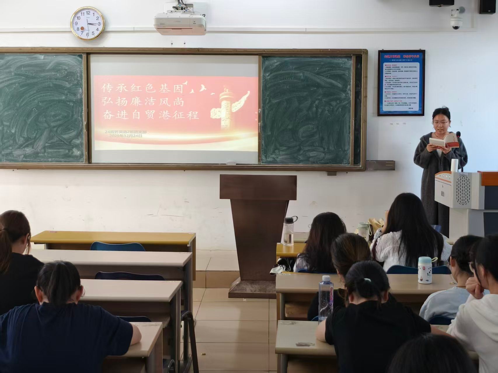 12月12日,学院团总支书记黄华在学校BE101小型学术报告厅讲授“涵养清正廉洁新风正气 践行自贸港建设青春担当”主题团课,团总支学生会全体干部、各团支部学生干部骨干共100余人到场聆听本次主题团课。