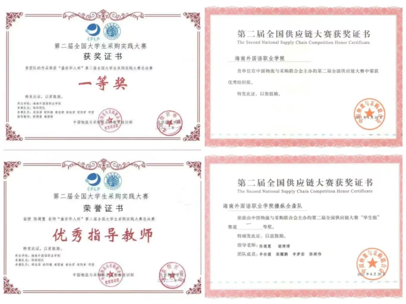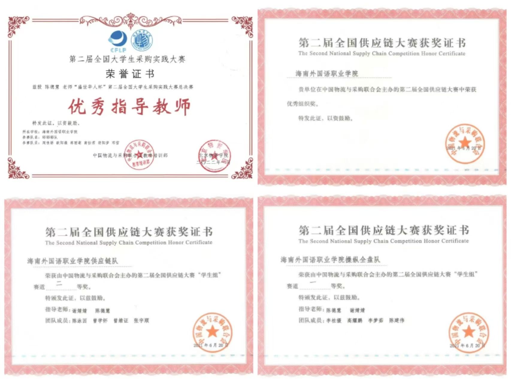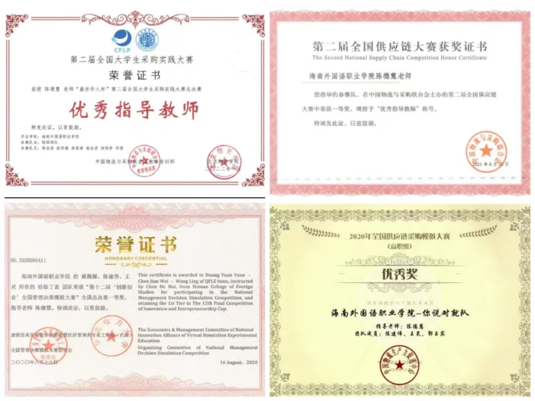 (1)指导学生在第一届全国供应链大赛中,分别获得国家级二等奖三等奖。