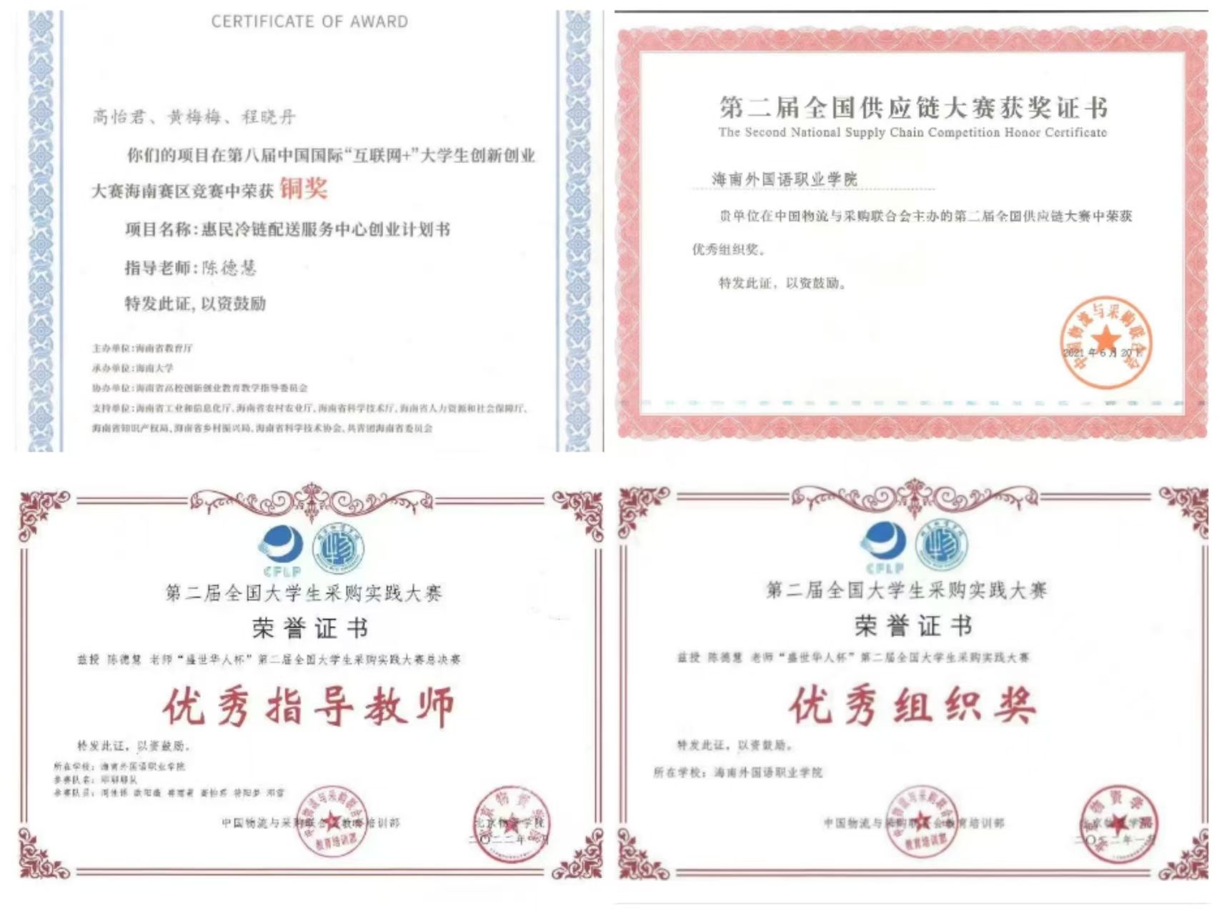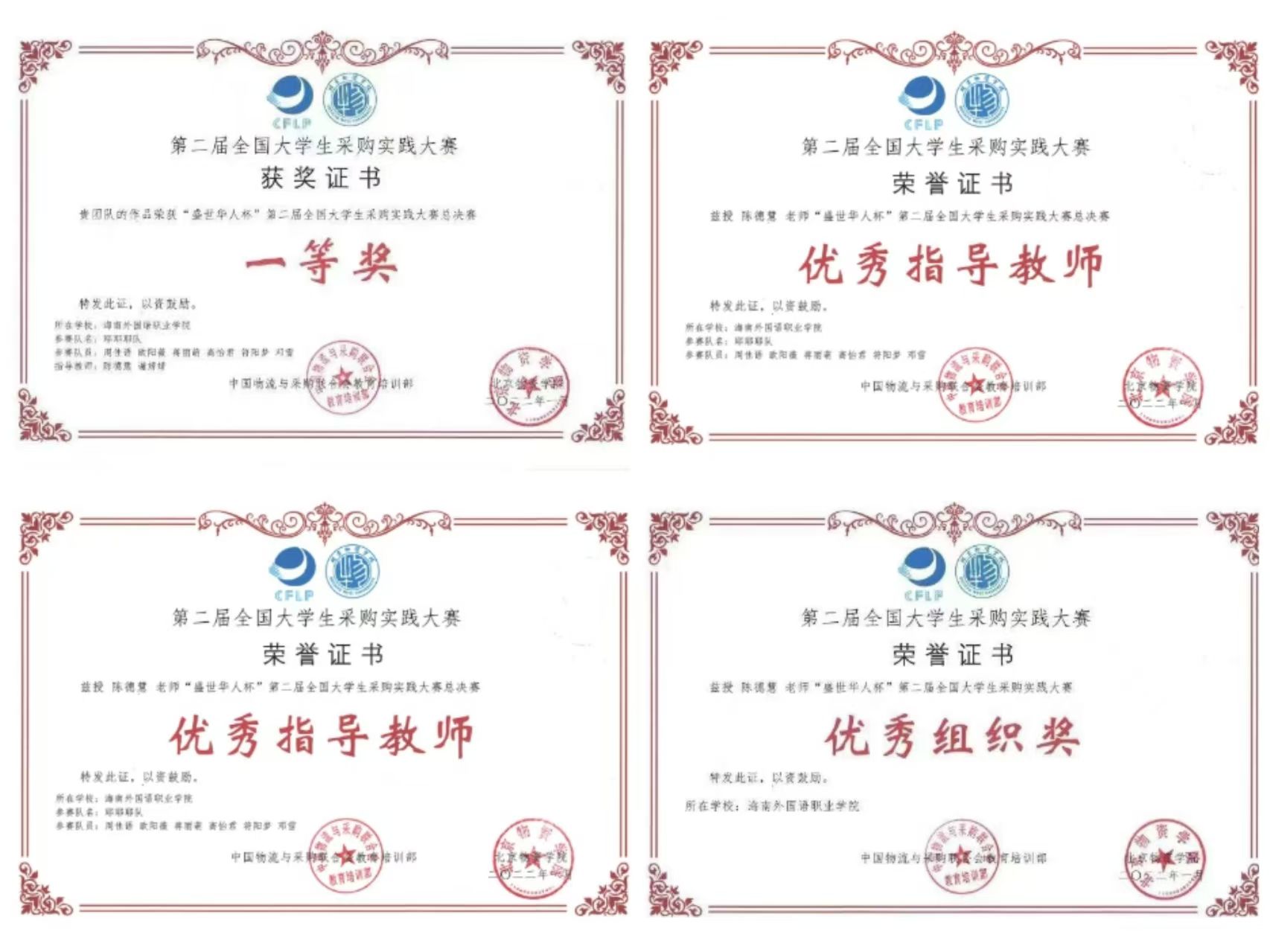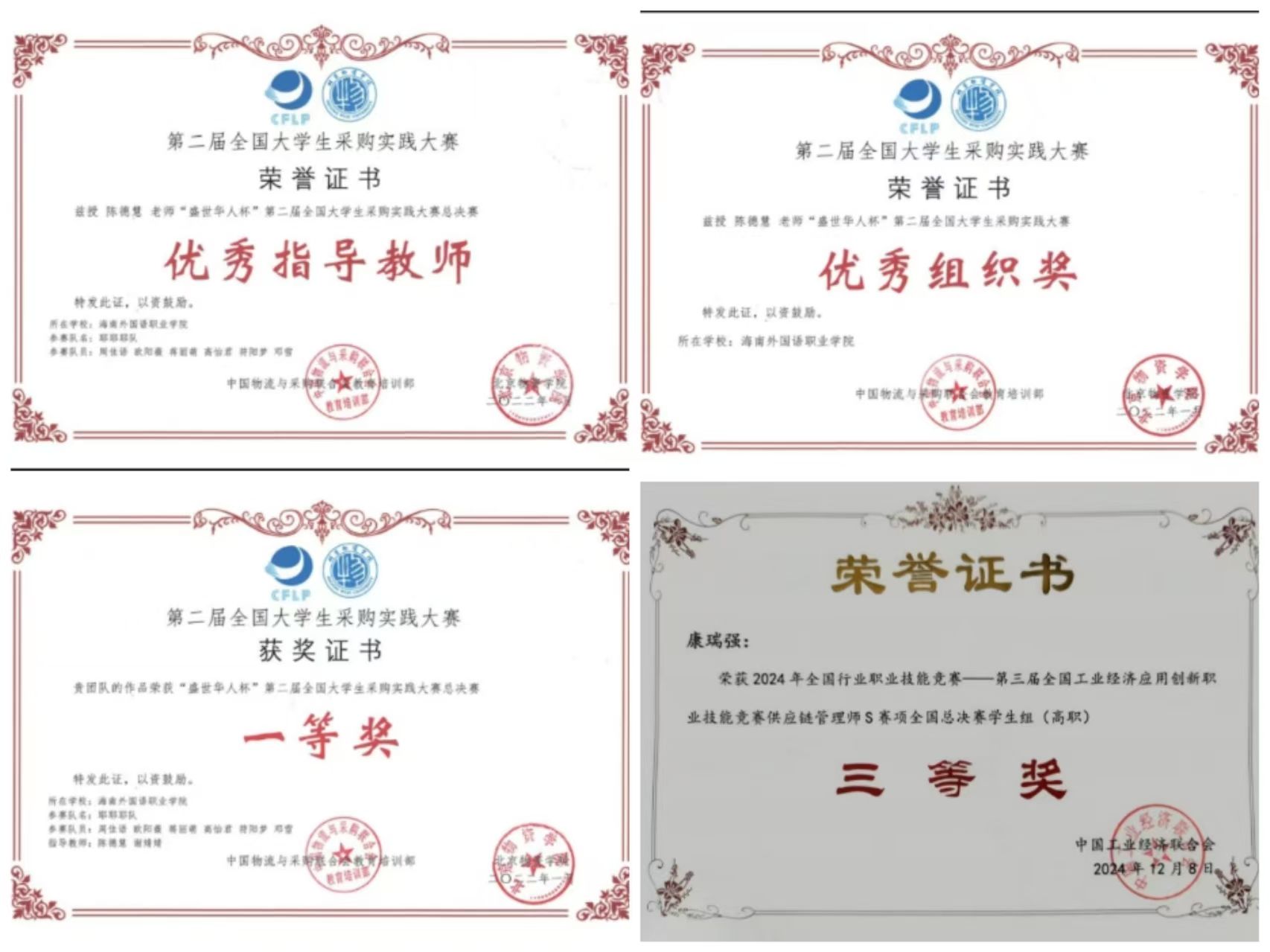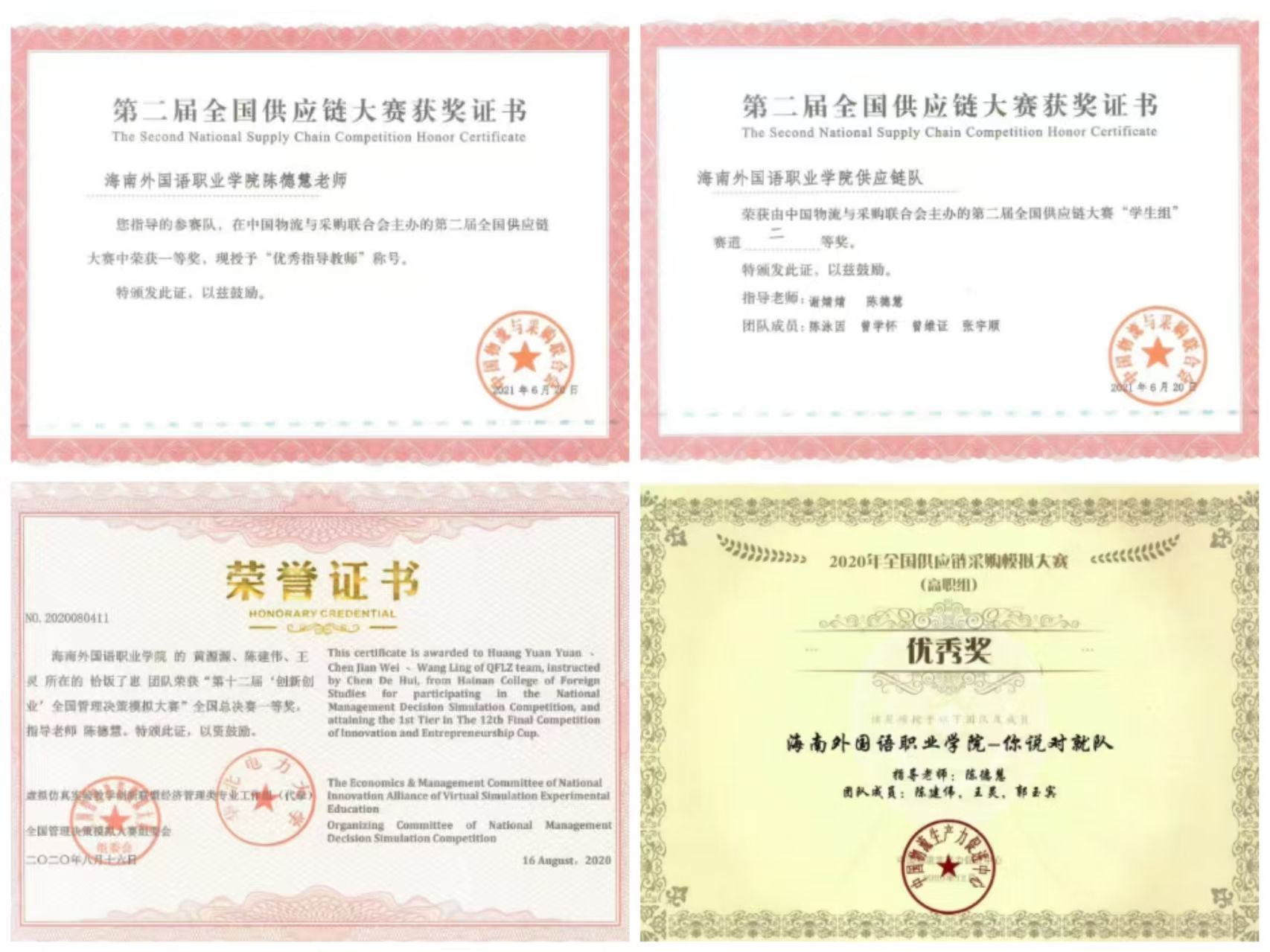 (1)指导学生在第一届全国供应链大赛中,分别获得国家级二等奖三等奖。