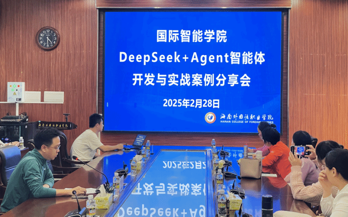 为推动学校教育教学与人工智能的深度融合,提升教师的教学创新与人工智能技术应用能力,国际智能学院于2月28日在综合楼7楼第一会议室成功举办了“AI赋能教学:Deepseek+Agent智能体开发与应用实战分享会”。活动由国际智能学院副院长吴昊主持,张大玮老师担任主讲,吸引了多个学院和专业的教师积极参与,共同探讨AI技术在教育领域的应用。