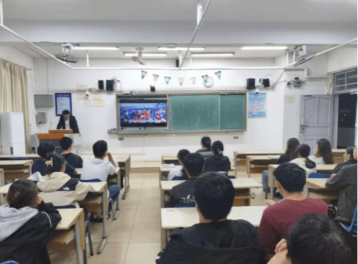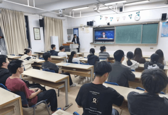 国际智能学院充分发挥“外语+智能”的专业优势,在活动中增添了独特的学院印记。选取了英文国际媒体对中国发展规划的报道片段作为补充观看材料,引导学生从国际视角理解“十五五”的世界意义。