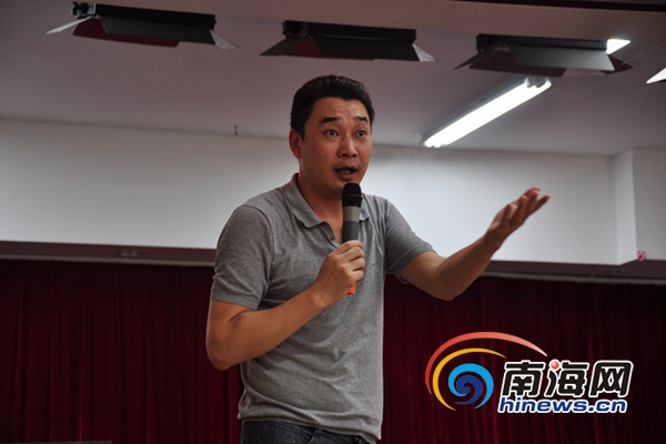 创业导师曹同军正富有激情的讲述自己的个人经历,希望给同学们启发。 (南海网 吴湟帅 摄)
