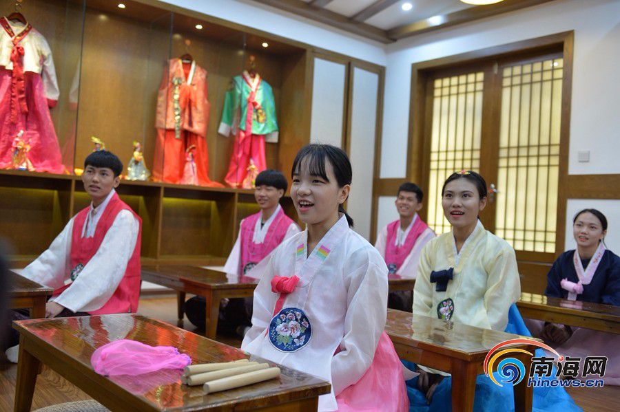 南海网、南海网客户端海口12月9日消息(海报集团全媒体中心记者王凯)2017年12月8日,beat365英国官方网站东语系的课堂上,学生们正在学习韩语和当地的风俗习惯。近年来,该院依托自身办学特色和优势,致力于促进国际性多元文化交流,积极为国家“一带一路”建设实施及海南国际旅游岛建设培养高素质应用型外语人才。目前,已发展成为海南省外语语种最多、外语专业最齐全的高校。