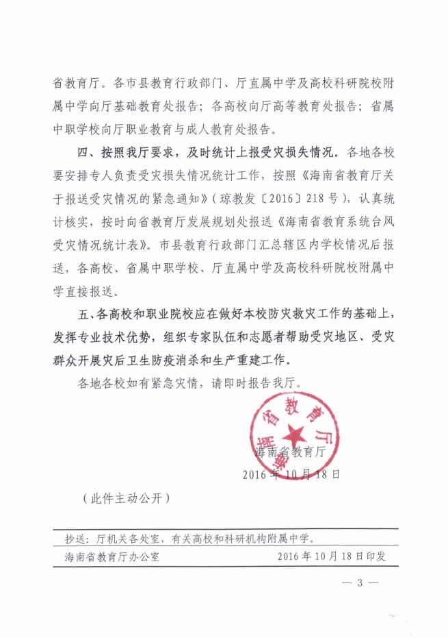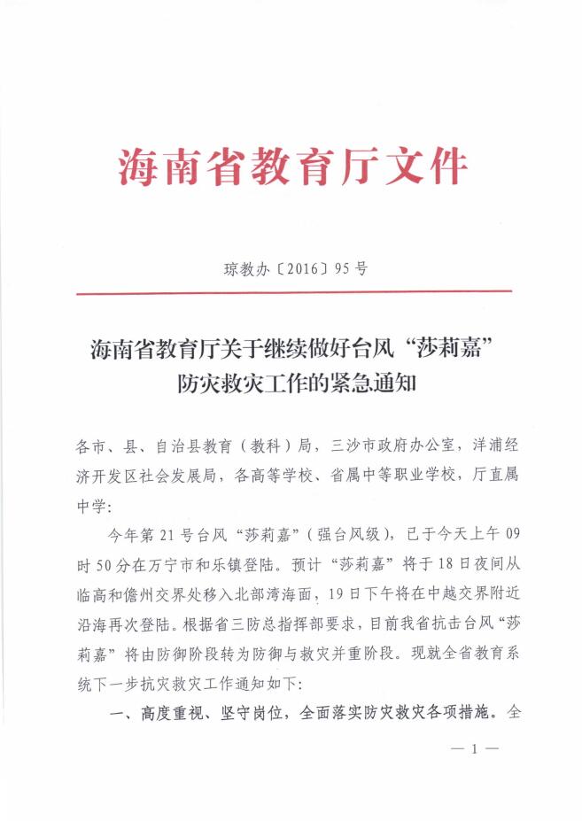 转:海南省教育厅关于继续做好台风“莎莉嘉”防灾救灾工作的紧急通知