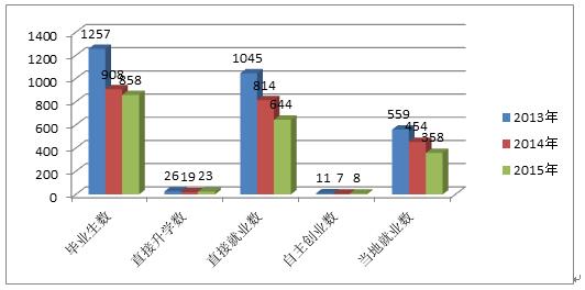 2014-2015年,学校毕业生直接就业率保持在75%-90%。2015年从事的工作与专业相关的毕业生比例为59.92%。2014年企业订单学生数为113人,占毕业生比率为14.85%。当地就业数增长明显2013年为人,2014年为中,2015年为人,服务中小微企业及基层就业数稳中有增。毕业生升学和就业情况体现了学校坚持附身贴地、提升能力、服务区域经济发展的办学定位,在为区域经济发展培养高素质技术技能人才以及普职融通、构建人才成长立交桥方面取得了较好的成果。