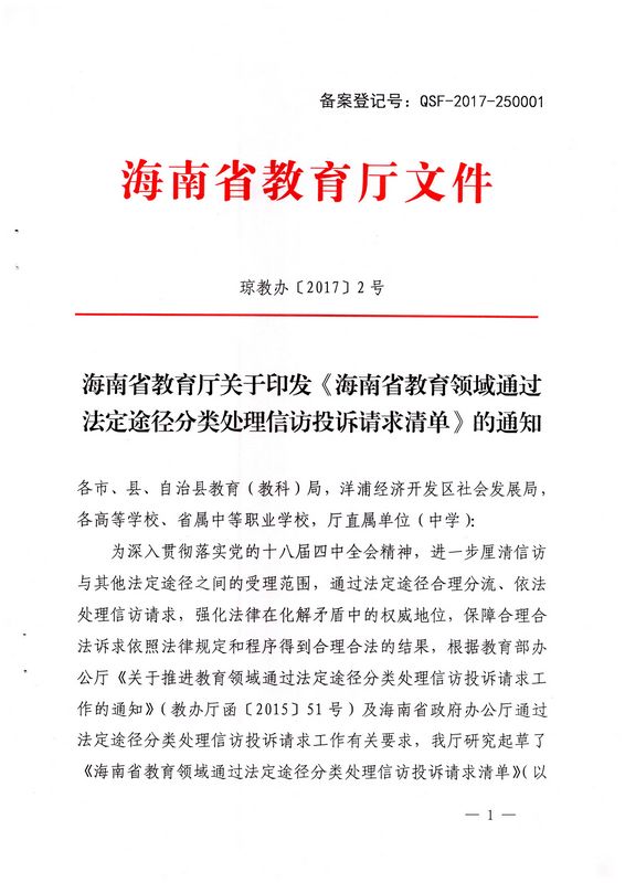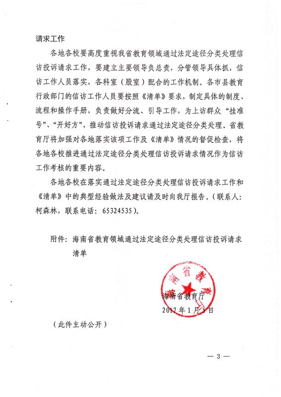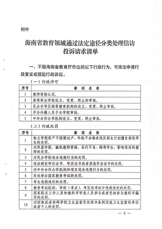 【转】海南省教育厅关于印发《海南省教育领域通过法定途径分类处理信访投诉请求清单》的通知