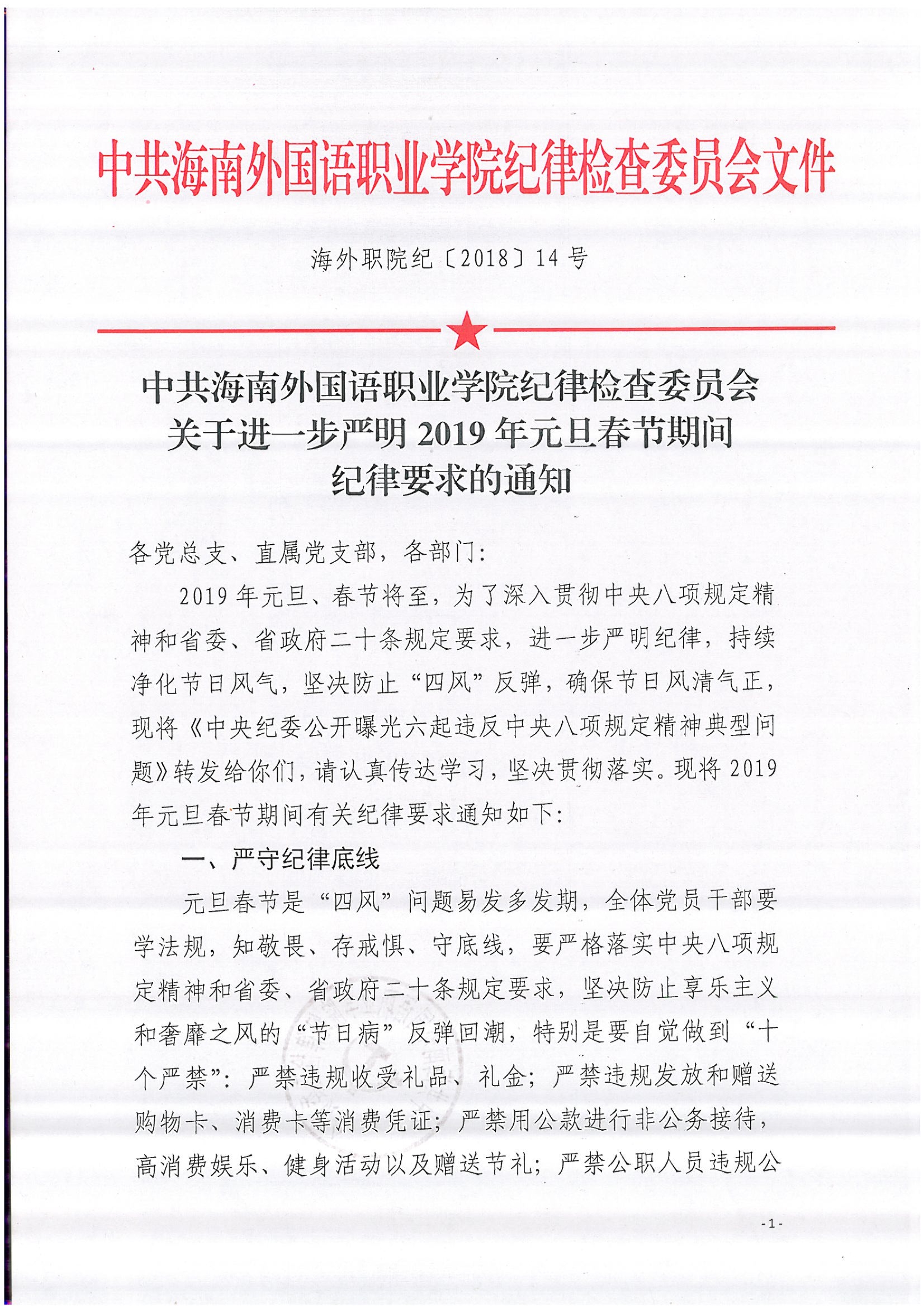 中共beat365英国官方网站纪律检查委员会关于进一步严明2019年元旦春节期间纪律要求的通知