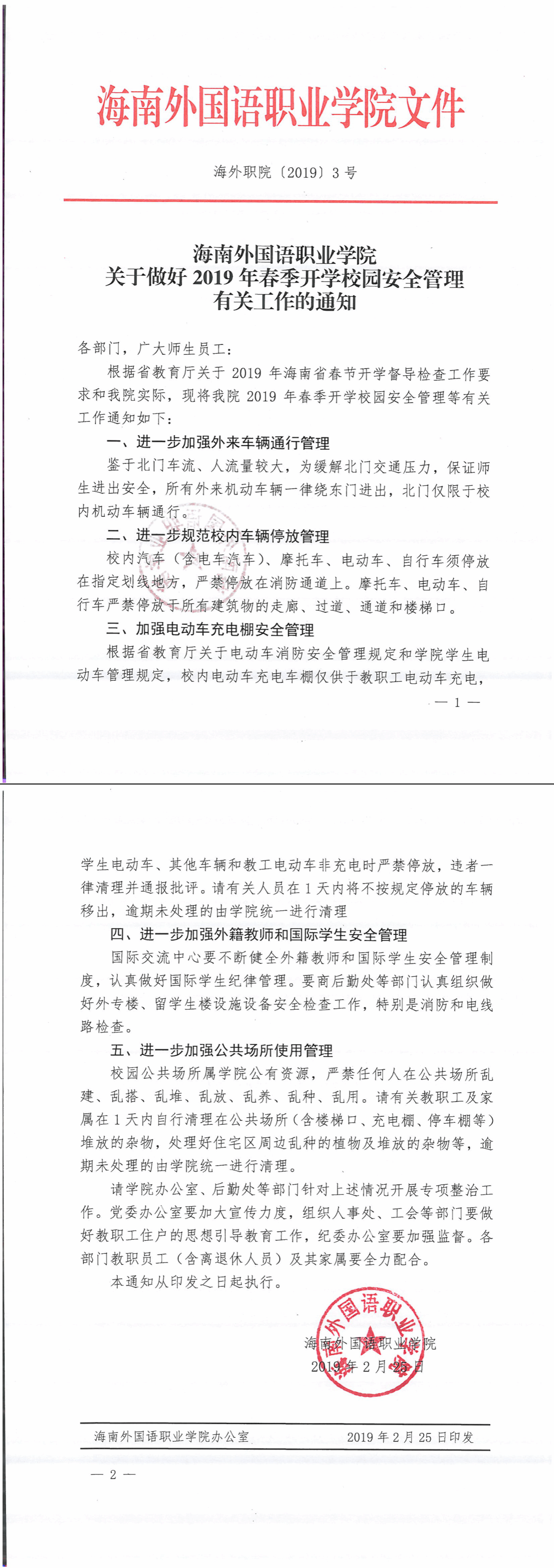关于做好2019年春季开学校园安全管理有关工作的通知