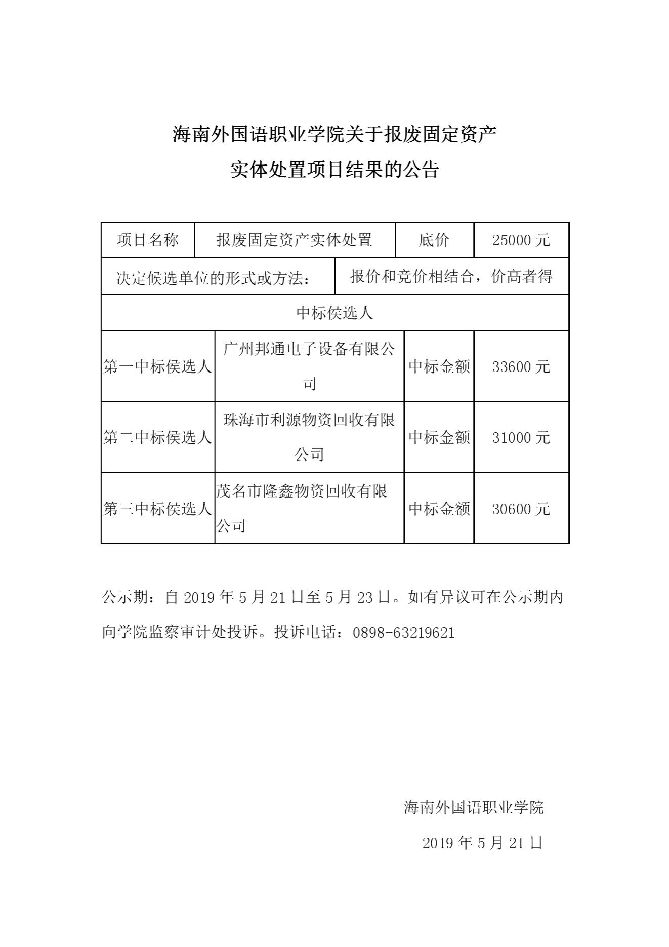 beat365英国官方网站关于报废固定资产实体处置项目结果的公告