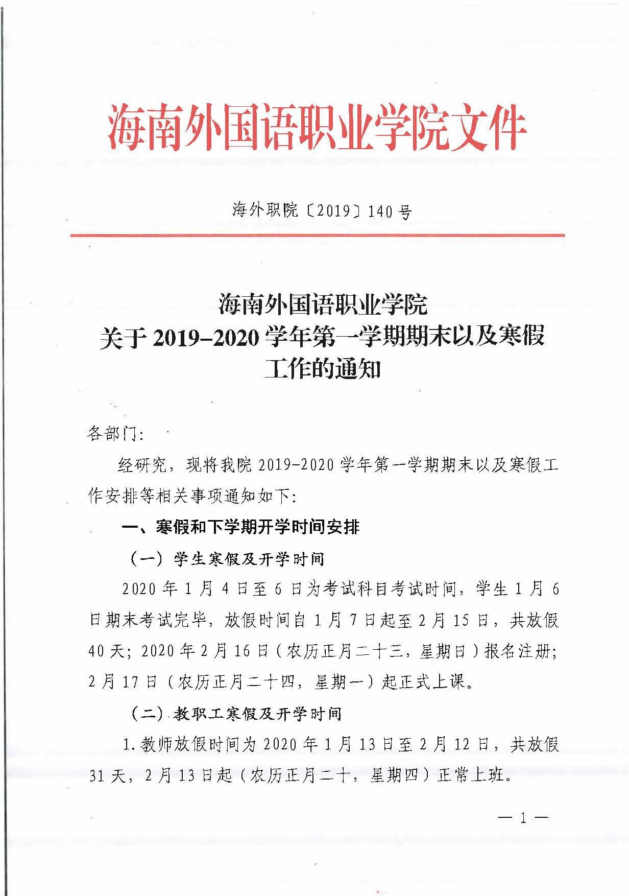 beat365英国官方网站关于2019-2020学年第一学期期末以及寒假工作的通知