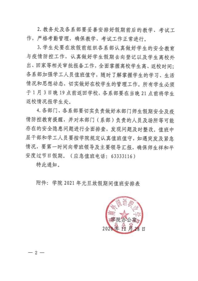 学院办公室关于2021年元旦放假的通知