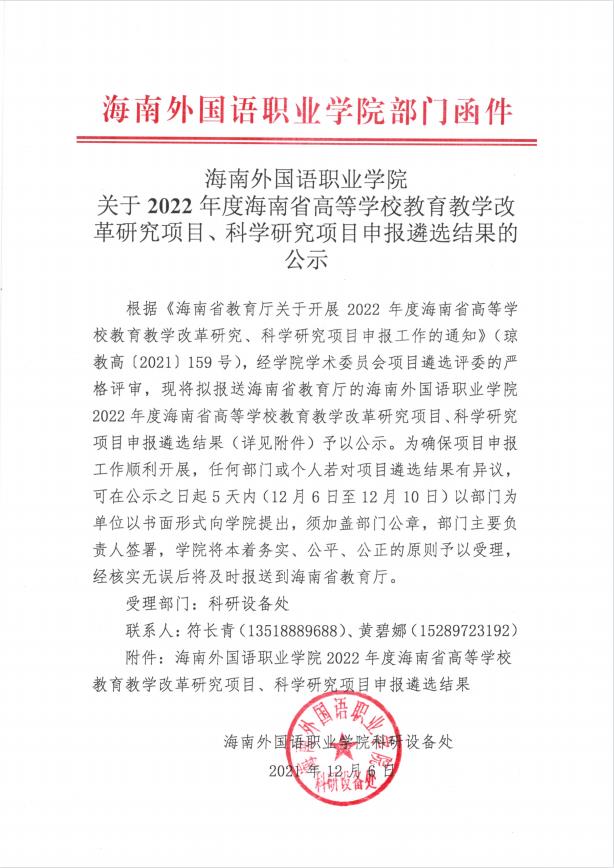 beat365英国官方网站关于2022年度海南省高等学校教育教学改革研究项目、科学研究项目申报遴选结果的公示