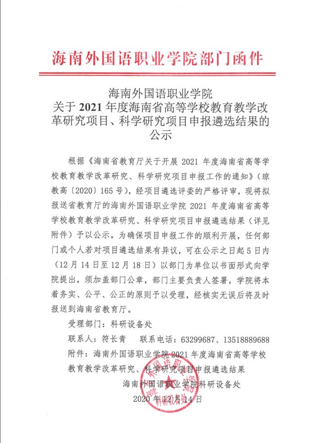 beat365英国官方网站关于2021年度海南省高等学校教育教学改革研究项目、科学研究项目申报遴选结果的公示