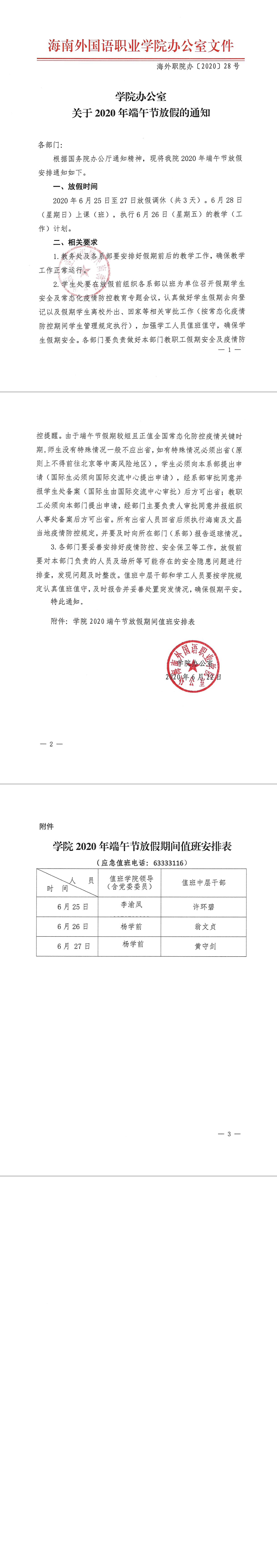 学院办公室关于2020年端午节放假的通知