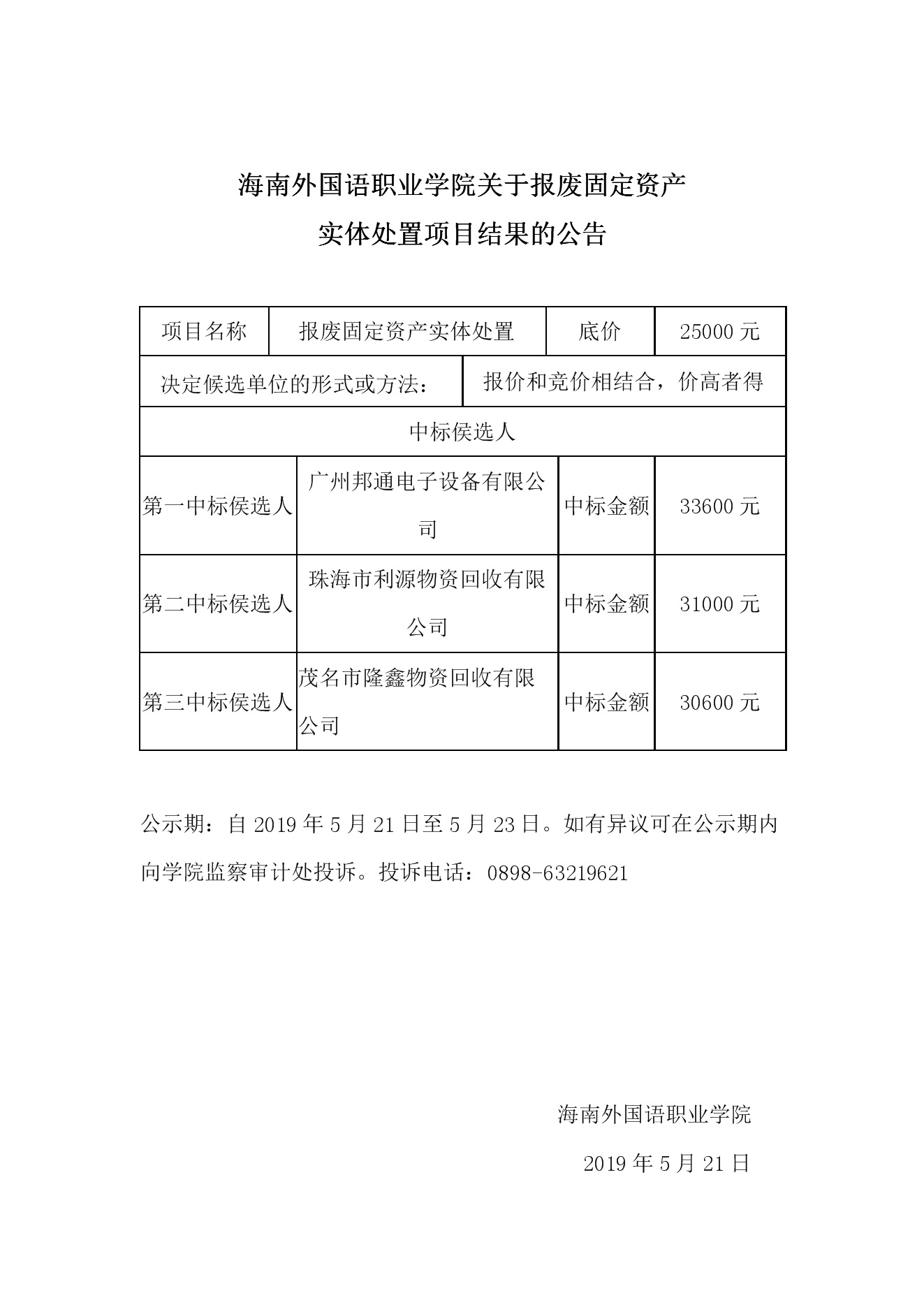 beat365英国官方网站关于报废固定资产实体处置项目结果的公告