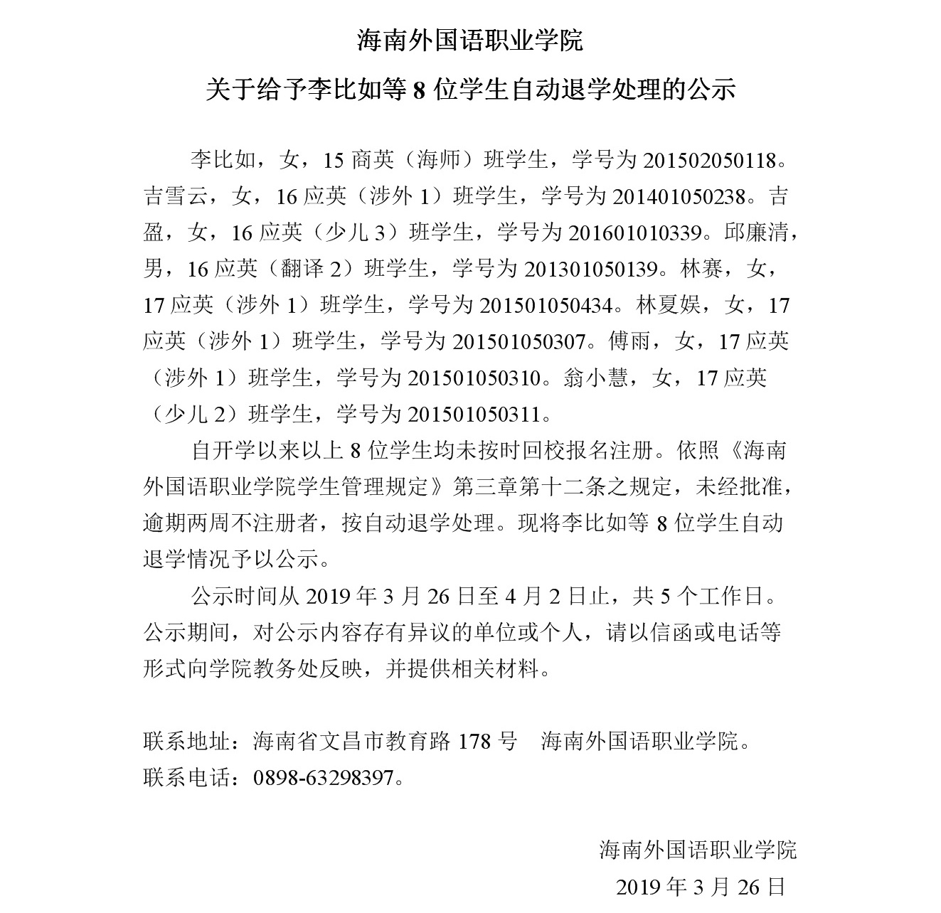 beat365英国官方网站关于给予李比如等8位学生自动退学处理的公示