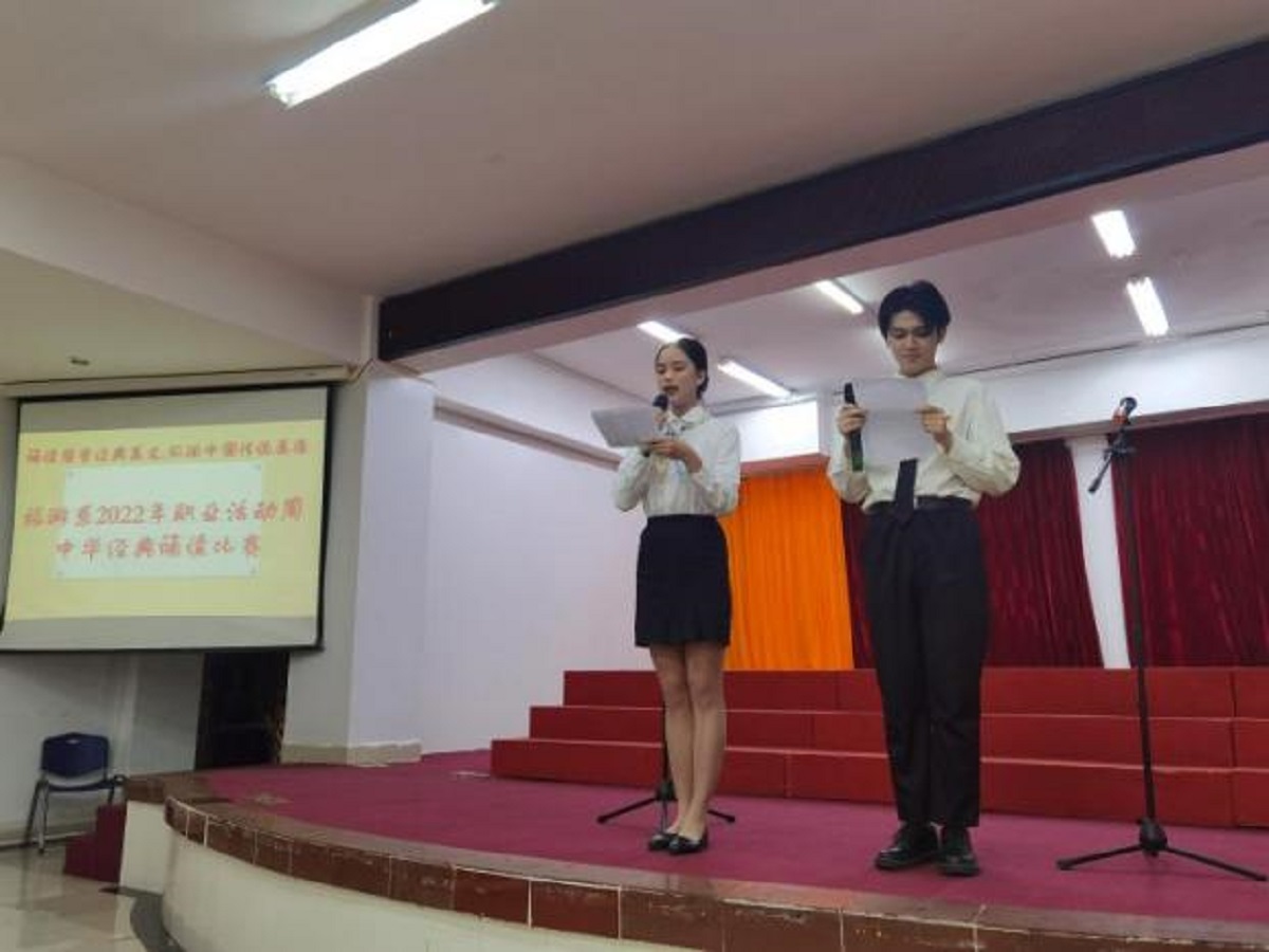 2022年5月11日14:30,beat365英国官方网站旅游系2022年职业教育活动周“诵读国学经典美文·弘扬中国传统美德”国学经典诵读比赛在多功能报告厅顺利举行。