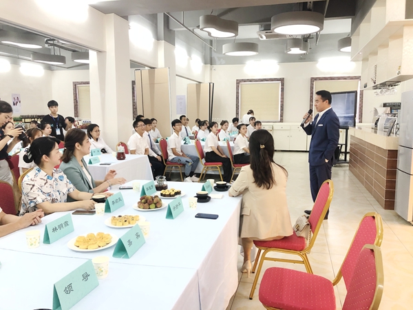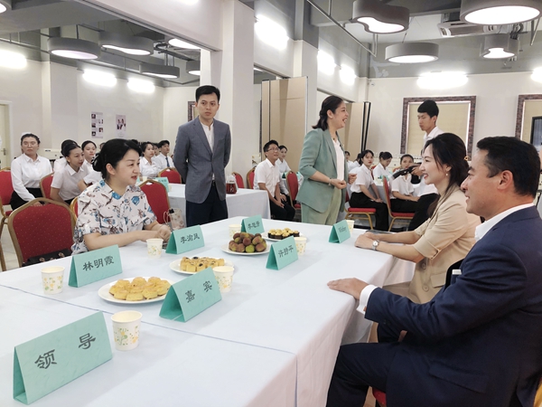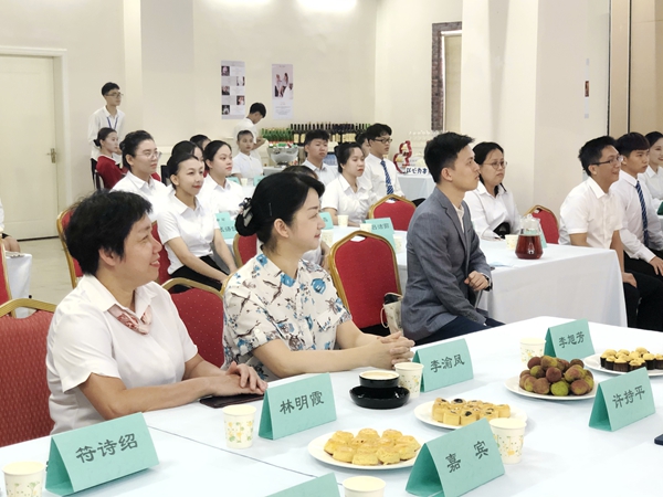 5月24日下午,学院院长李渝凤教授出席旅游系2021年职业教育活动展示周之“老总下午茶”活动并为活动开幕致辞。在活动中,旅游系特别邀请了曾被评为英国及爱尔兰地区希尔顿年度最佳厨师和曾担任半岛酒店历史上第一位华裔总厨、芝加哥酒店行业中第一位华裔副总厨的三亚保利瑰丽酒店的许持平总经理。李渝凤院长、许持平总经理等与旅游系师生们共同开展了一场别开生面、耐人寻味的下午茶活动。