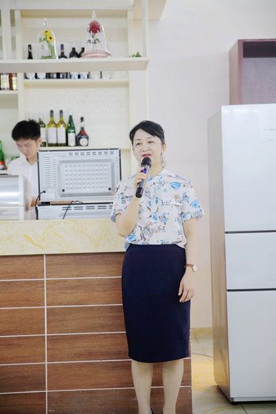 学院院长李渝凤教授一走进活动现场就用流利的英语与师生们亲切的打着招呼。她首先感谢三亚保利瑰丽酒店许持平总经理一行能够在百忙之中积极参与到学院活动中来并为师生分享宝贵的从业经验。随后,院长李渝凤教授简单介绍了学院目前的“外语+”办学特色与“一体两翼一提升”的专业特色发展格局,并与大家分享了学院在不久之前荣登中国公办一流高职高专院校Top60的好消息,同时祝贺旅游系学生在刚刚举办的全国旅游院校服务技能大赛中首次参赛就取得三等奖和优秀组织奖的优异成绩。随后李院长指出,在习近平总书记近期对职业教育工作作出重要指示和全国职业教育大会精神指引下,在海南自贸港、海南国际教育创新岛建设的火热之际下,学院认真贯彻落实教育部、省教育厅对职业教育活动周的安排,学生们能充分展示出学院职业教育的优势与特色,并将职业活动带进社区、带进我们的生活,不仅让学院学生的技能与综合素养得到了良好的训练与提升,也充分体现了学院作为海南唯一一所公办外语类高校的使命、责任与担当。