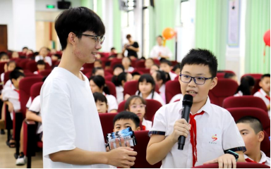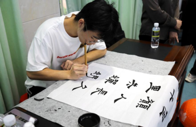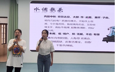 活动现场,志愿者叶芃、黄莹首先为现场同学们讲述中秋节的由来,并以互动的方式,与同学们共同讨论中秋节的传统习俗,现场气氛热烈。活动中,还设置了朗诵、书法环节,志愿者吴苡侨、吴何毓霞带领同学们一起朗诵中秋韵诗——《水调歌头》,洪昊鹏为大家手书《水调歌头》的诗词,表达对同学们的中秋祝愿。同学们在朗诵与书法中共同领略中华优秀传统文化的丰富内涵。