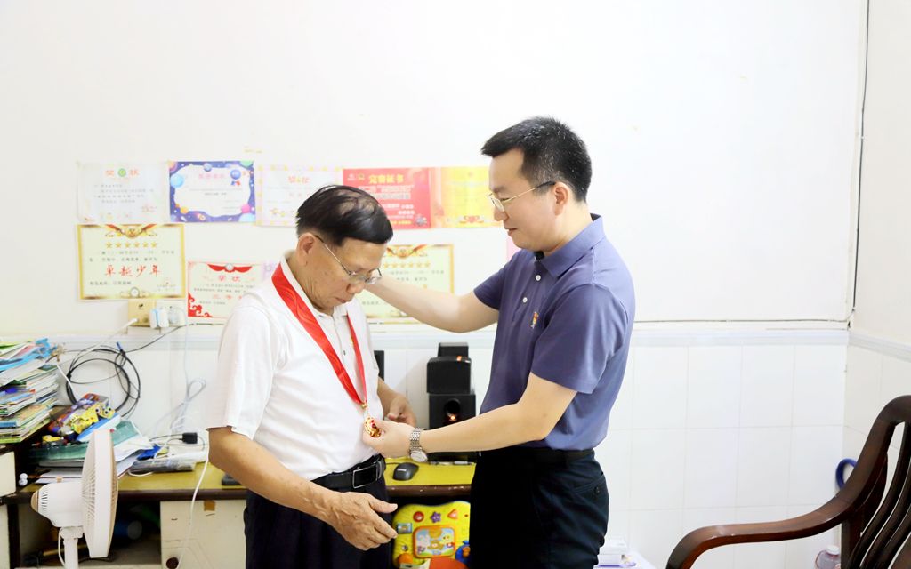 陈正强为莫运深颁发“光荣在党50年”纪念章