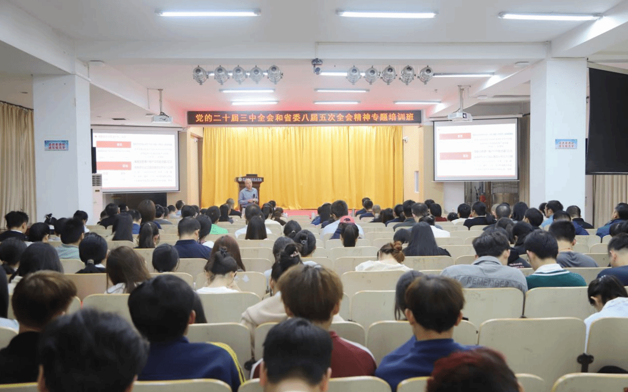 陈正强在总结讲话中用“一种情怀、两个精神、三项特点、四点启示、五大内容”提炼了此次讲座的意义和价值,指出通过聆听此次讲座,让师生深刻理解到党中央、省委和全体海南人对海南自贸港建设寄予的情怀,深刻学习到党的二十届三中全会和省委八届五次全会对海南自贸港建设的部署和谋划。讲座呈现站位高、内容实、效果好的特点,带来了敢闯敢干、善作善成、时不我待、后发制人等启示,所讲到的五大部分内容既全面梳理了海南自贸港建设的脉络,又进一步增强了大家投身海南自贸港建设的信心和决心。希望全校师生要认真领悟此次讲座的内容,在全面学习把握、贯彻落实上持续下功夫,将学习成果转化为推动学校跨越式发展的实际成效,为书写中国式现代化的海南篇章作出新的更大贡献。学校全体中层干部、科级干部、党务工作者、师生代表共约200余人到场聆听讲座。