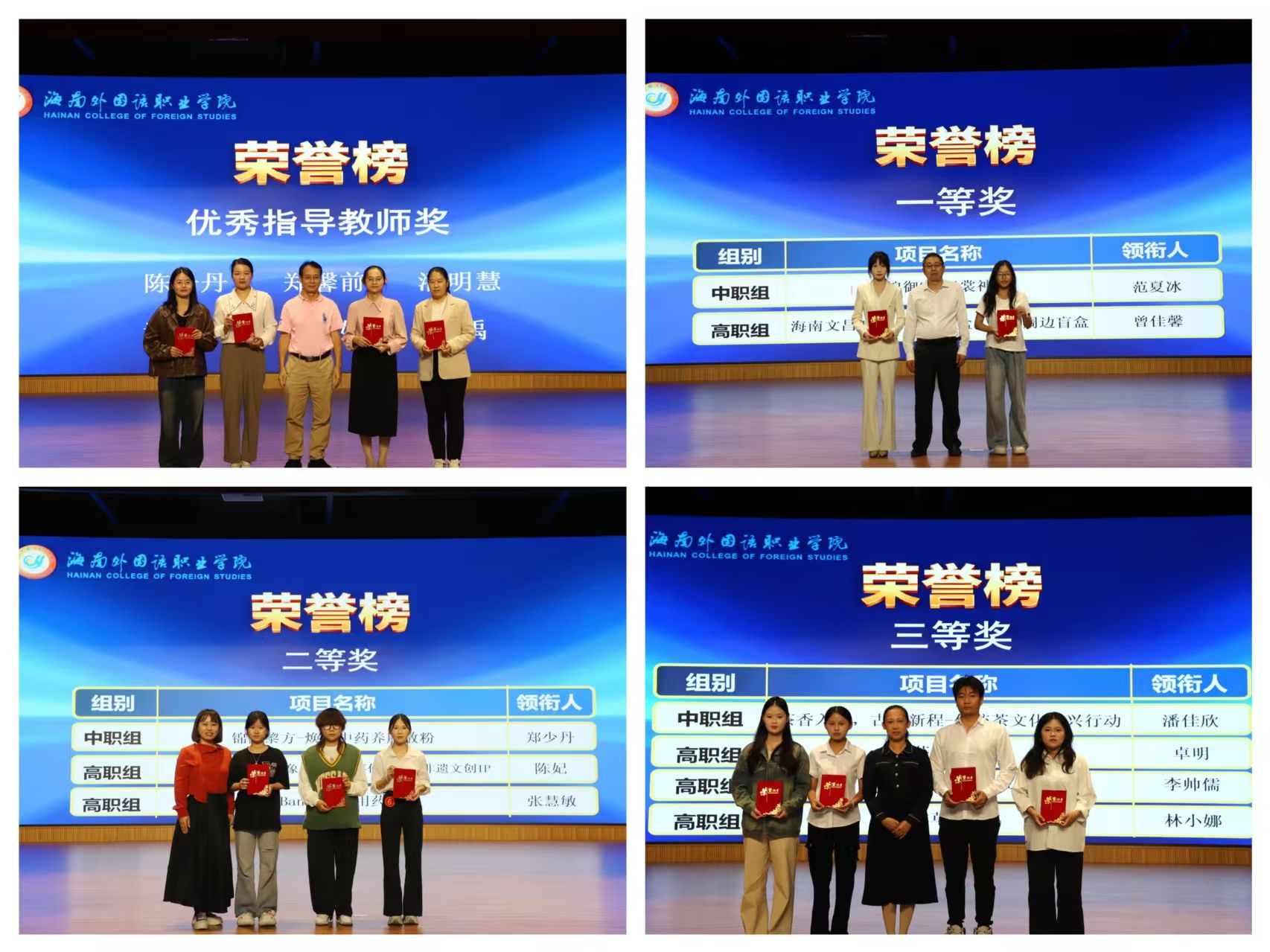 经过评委严格审评,大赛最终评选出一等奖2项,二等奖3项,三等奖4项,并为获奖项目指导教师颁发“优秀指导教师奖”。